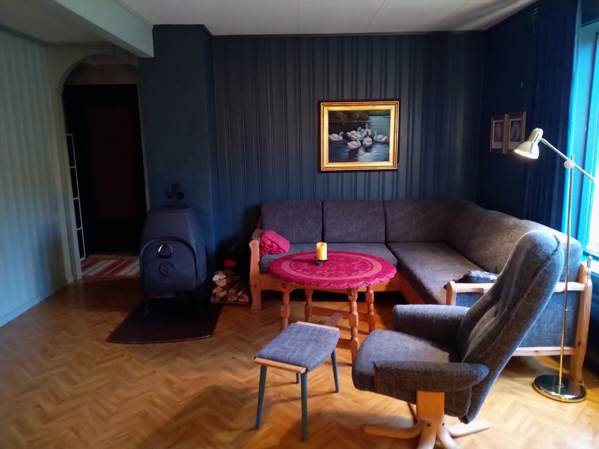 Kätevä ja valoisa huoneisto! Mukava keittiö, jossa on kaikki tarvitsemasi laitteet. Hiljainen naapurusto. Sijaintini sopii hyvin ystäville, pariskunnille, pariskunnille, joilla on lapsi, ja yksin matkustaville henkilöille. Kohde on kävelymatkan päässä ruokakaupoista, pyörä- ja hiihtoladusta, vuoristo- ja metsävaellusreiteistä. Noin 2 km keskustaan. 5–6 minuutin kävelymatka julkiseen liikenteeseen. Ilmainen wifi, norjalainen TV (NRK)