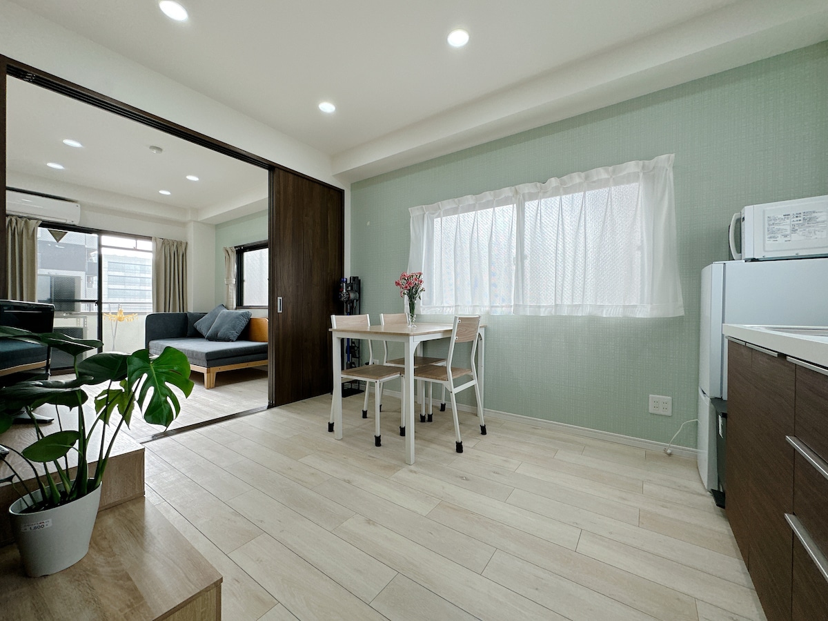 [yuzuki] Amerikkalainen huoneisto 4 hengelle / asema 3 minuutin kävelymatka / täysin varusteltu / 10 minuutin suora metro Namba / Nihonbashi Kuromon Market