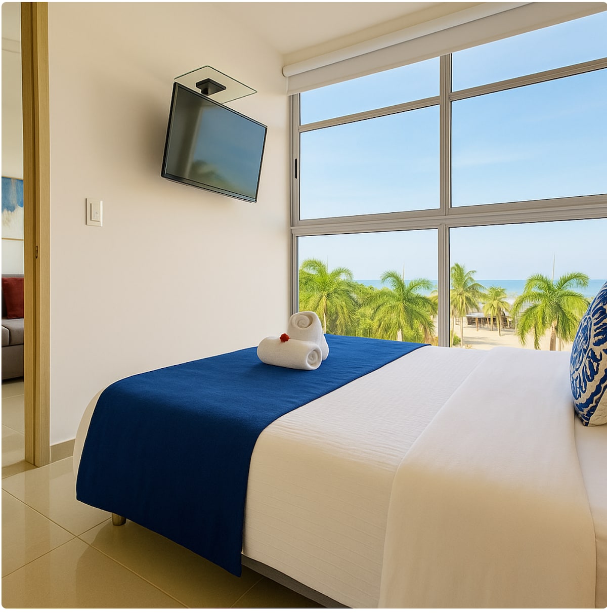 Ylellinen rantahuoneisto Morros Epicissä, La Boquillassa – Cartagenan ainoalla Blue Flag -sertifioidulla rannalla. Panoraamanäkymät Karibianmerelle, pääsy yksityiselle rannalle ja viiden tähden lomakeskuksen mukavuudet. Sijaitsee 20 minuutin päässä Cartagenan historiallisesta keskustasta ja 8 minuutin päässä Las Ramblas -ostoskeskuksesta. Täydellinen perheille, pariskunnille, etätyöhön ja luksuslomiin. Ainutlaatuinen sijainti pohjoisella alueella, kaukana ruuhkaisesta Bocagrandesta, tarjoaa täydellisen yksityisyyden ja ympärivuorokautisen turvallisuuden.