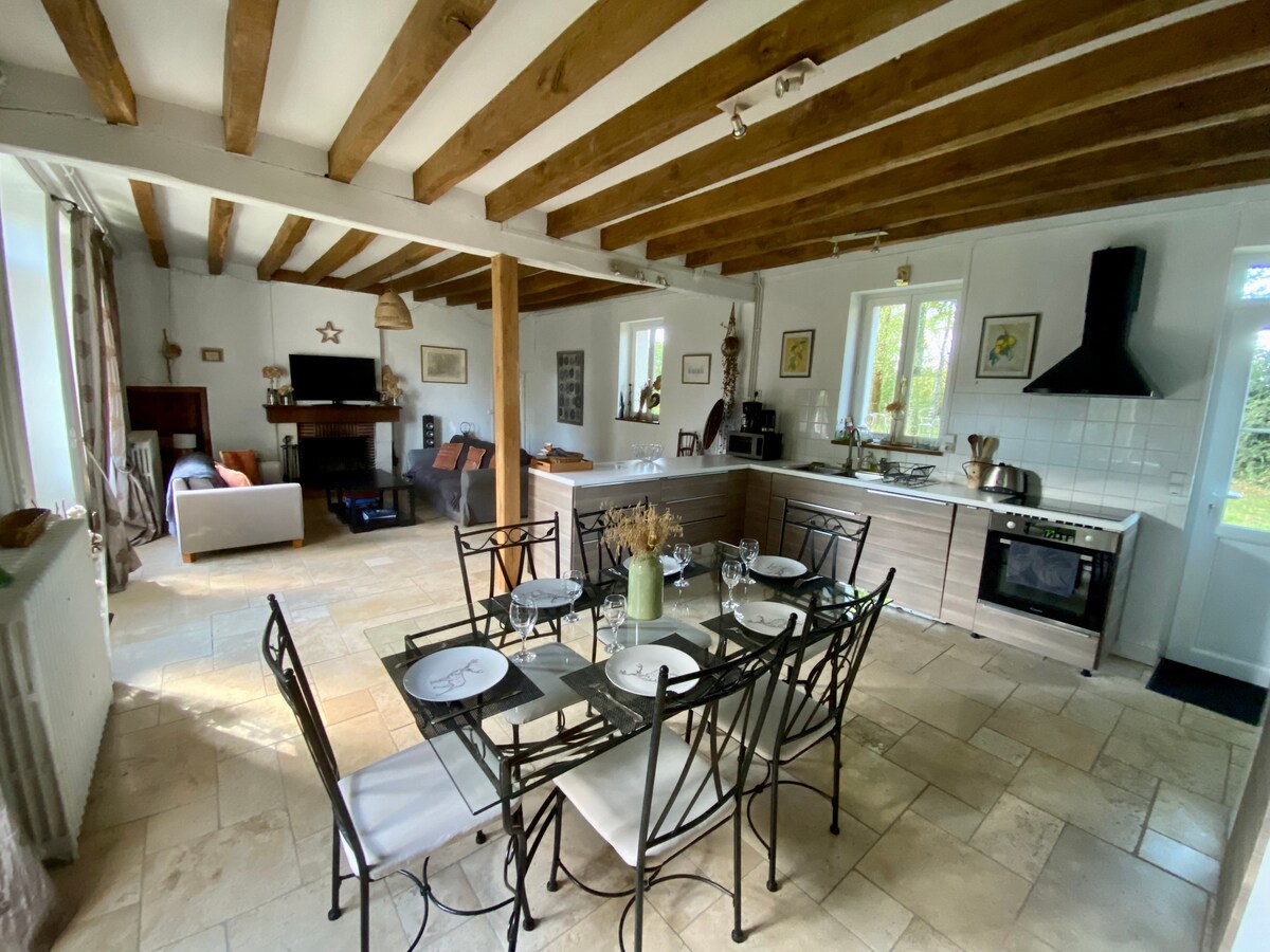 Viehättävä 1800-luvun puinen talo, joka on täysin kunnostettu Orléansin, Solognen ja Loiren Chateaux 'n porteilla. Suuri hiljainen ja metsäinen 800 m2: n puutarha ympäri taloa, grilli ja polkupyörät kävelyä varten. Kuituoptinen internetyhteys, yhdistetty televisio, amerikkalainen jääkaappi, pelihalli jne. Autolla: Kaupat: 5 minuuttia Loire: 7 minuuttia Orléans: 15 minuuttia Beaugency: 30 minuuttia Tämä on loma-asuntomme, joten se on ihanteellinen perheelle, mutta ei vain:)