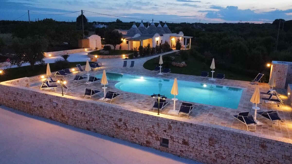 Tämä ainutlaatuinen tila, joka on rakennettu trulliin, on tyyliltään ainutlaatuinen ja pystyy tuomaan esiin Itrian laakson aitoja tunteita. Sisäänkäynti on vanhan mansikkaviinirypäleiden pergolan kautta, keittiö ja kylpyhuone on rakennettu "alkoveihin", kun taas ruokailutila ja makuualue sijaitsevat saraseenilaisessa trullossa ja erittäin korkeassa kartiomaisessa trullossa. Ulkoinen patio ja läheinen uima-allas, jossa on kaksi infinity-allasreunaa, mahdollistavat maiseman ja Ceglie Messapican horisontin ihastelun.