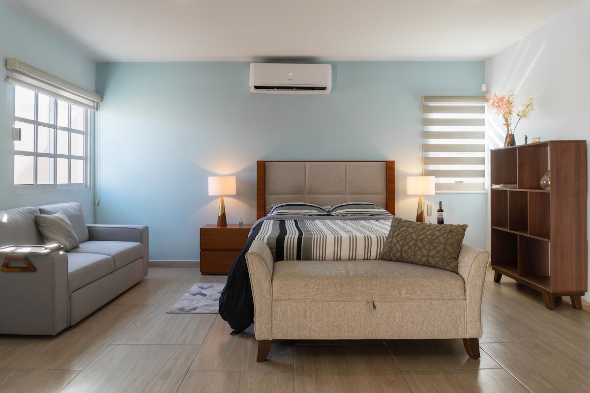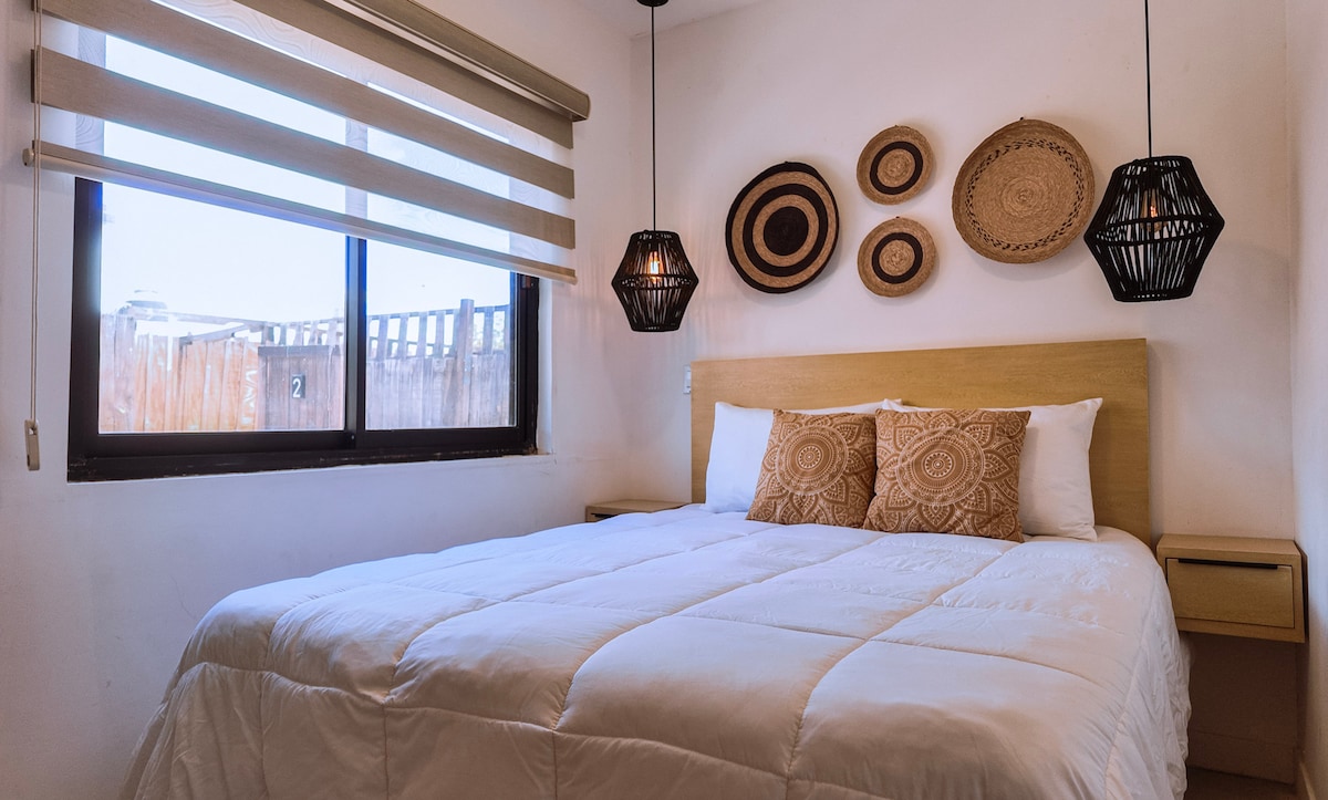Nauti tämän hiljaisen ja keskeisen majoituksen yksinkertaisuudesta. Saat mukavuutta, hyvän sijainnin ja turvallisuuden edulliseen hintaan, jotta voit nauttia täysin 5 tähden majoittumisesta kauniissa La Pazin kaupungissa. Lähellä ostoskeskuksia, museoita, teattereita, apteekkeja, ravintoloita, huoltoasemia, sairaaloita jne. Ilmastointi, älykäs näyttö, jossa on suoratoistopalvelut, työtila, silitysrauta, boyler, keittiötarvikkeet, kahvinkeittimet, mikroaaltouuni, induktiigrilli ja jääkaappi.