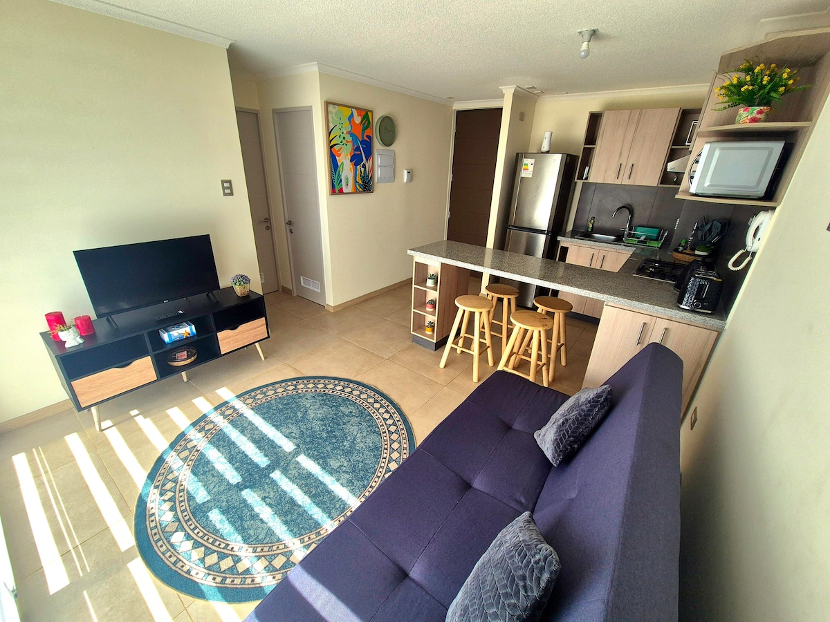 Tämä huoneisto sijaitsee Peñuelasissa, Serenan ja Coquimbon rajalla. Huoneistossa on terassi, jolta on merinäkymä. Huoneisto sijaitsee korttelin päässä rannalta ja muutaman askeleen päässä Casino Enjoy -kasinolta. Majoituksessa on kolme makuuhuonetta, kaksi kylpyhuonetta ja se on mukavasti kalustettu. Siellä on wifi, kaapeli-tv, täysin varusteltu keittiö, pysäköinti ja rakennuksessa on uima-allas, pesula, välipalojen annostelulaite.