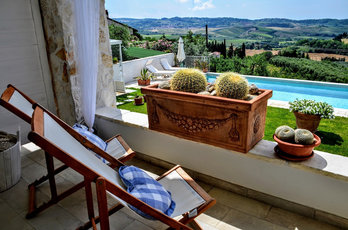 Margherita: näkymät Toscanan maisemiin, uima-allas ja kävelymatka kylään