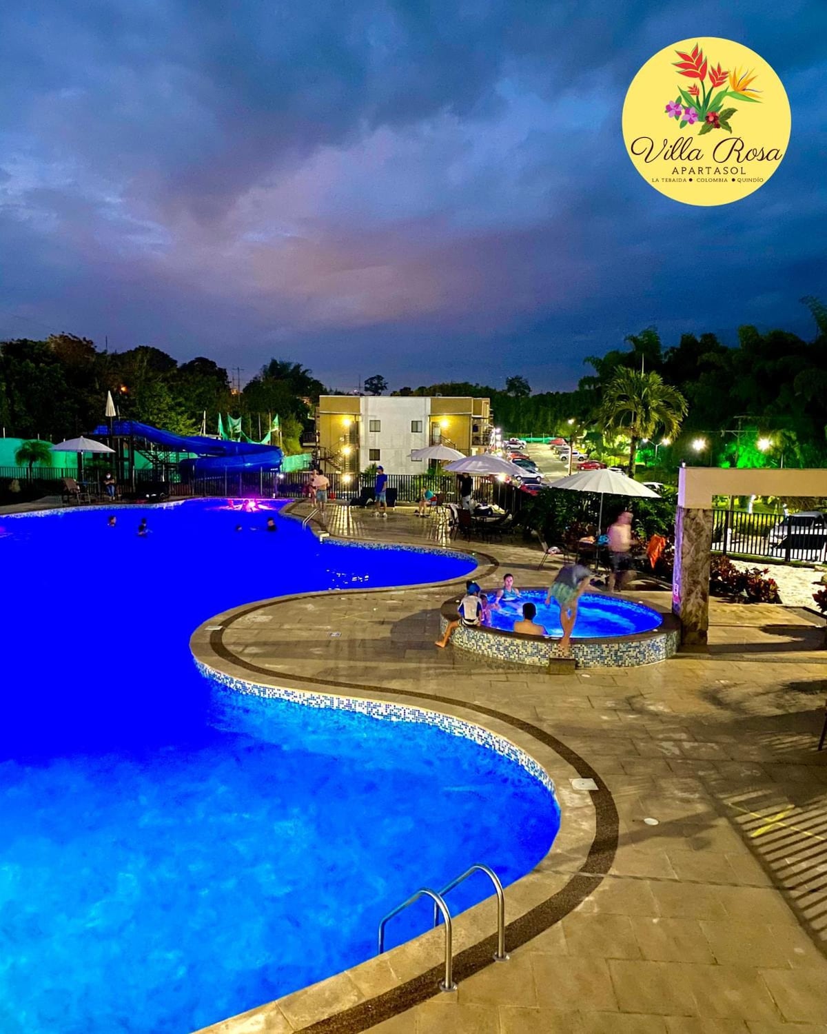 Tutustu trooppiseen paratiisiin majoituksessamme! Kohteemme sijaitsee Quindíon lämpimimmällä alueella, vain 25 minuutin päässä Parque del Caféstä ja 8 minuutin päässä El Edénin kansainväliseltä lentoasemalta. Kohteemme tarjoaa: – Kolme uima-allasta, poreallas ja höyrysauna rentoutumista varten – Liukumäki, jalkapallo- ja koripallokenttä, leikkipaikka lapsille ja paljon muuta – nopean internetyhteyden – kaksi huonetta - Yksityinen pysäköintialue Nauti Quindíon luonnonkauneudesta viihtyisässä huoneistossamme!