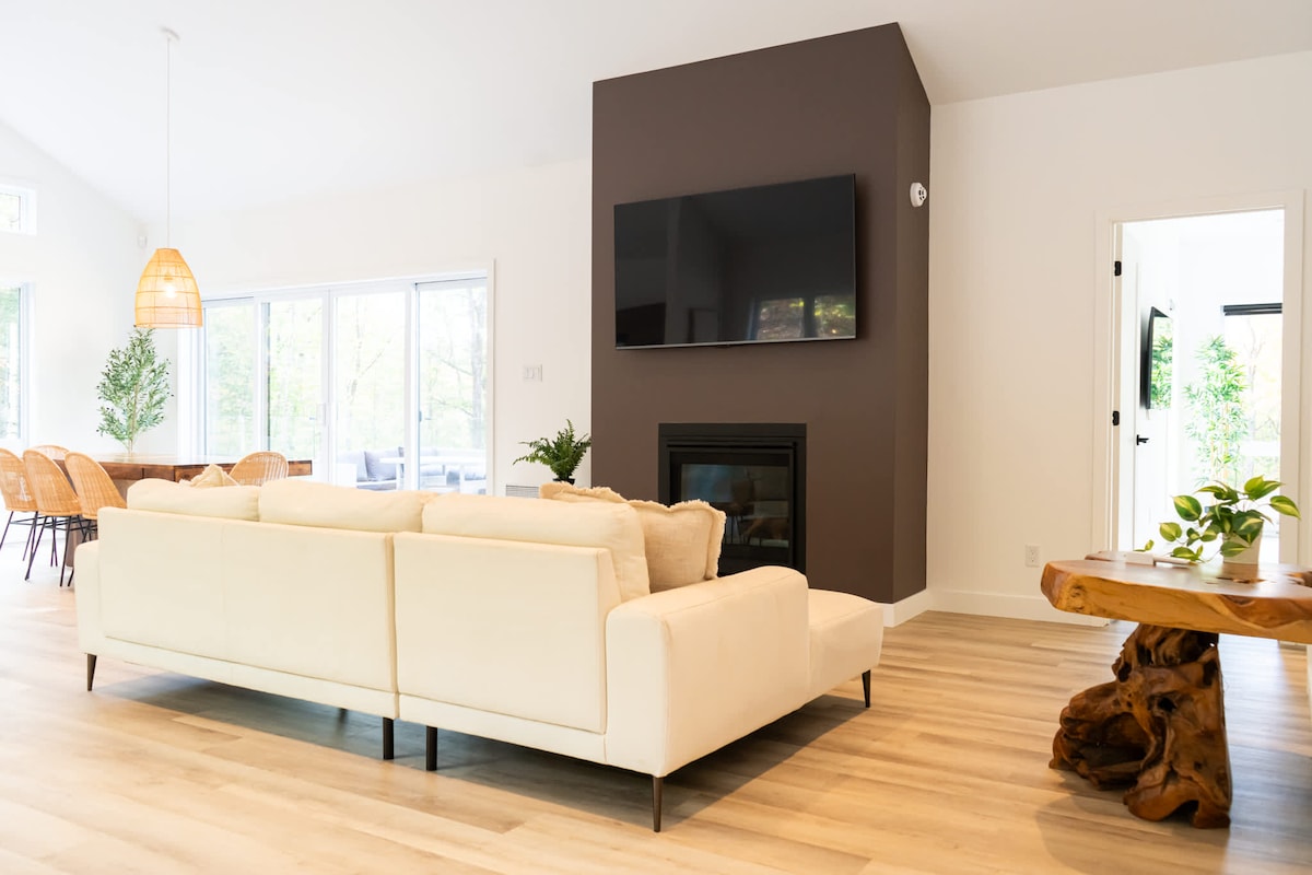 ★ One of the most unique chalets in Mont-Tremblant★ Unique & Secluded all White Glass Treehouse with Breathtaking Mont-Tremblant mountains views! The cabin is majestically glazed architectural space combining natural simplicity and contemporary luxury, 10 min from village of Mont-Tremblant, Ski Tremblant. Nestled on the end of the cliff with a fully glazed living space, Bathtub with view, The Panoramic terrace & Private hot tub for an unparalleled relaxation experience. Canadian Designer.
