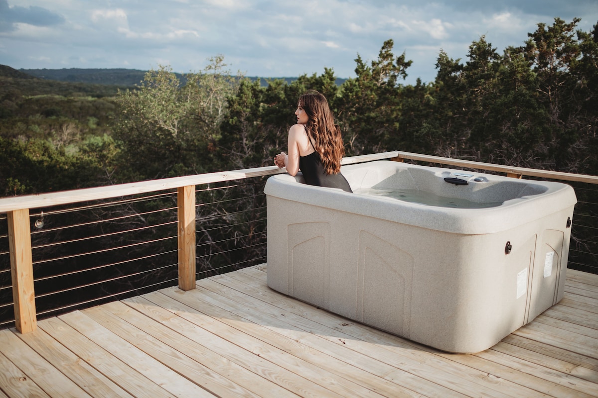 Tutustu täydelliseen Texas Hill Country -lomakohteeseen arkkitehtonisessa latoamme, joka sijaitsee 60 eekkerin villieläintilalla. Rauhallisen tien päässä on rauhaa, tilaa ja yksityisyyttä, mutta vain muutaman minuutin päässä paikallisista viinitiloista. Paranna majoittumistasi lisäämällä hyvinvointipaketti ja virkisty räätälöidyssä 4,8 metriä pitkässä puusaunassa ja 2,1 metriä pitkässä setripuusta valmistetussa hybridikylpyammeessa (sähkö ja puu). Oletko kiinnostunut järjestämään ystävien ja perheen kokoontumisen, intiimin häät tai retriitin? Ota meihin yhteyttä keskustellaksesi mahdollisuuksista.