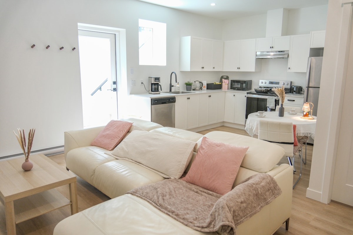 Kirkas 2 makuuhuoneen sviitti, jossa on täysin varustettu keittiö ja pesula