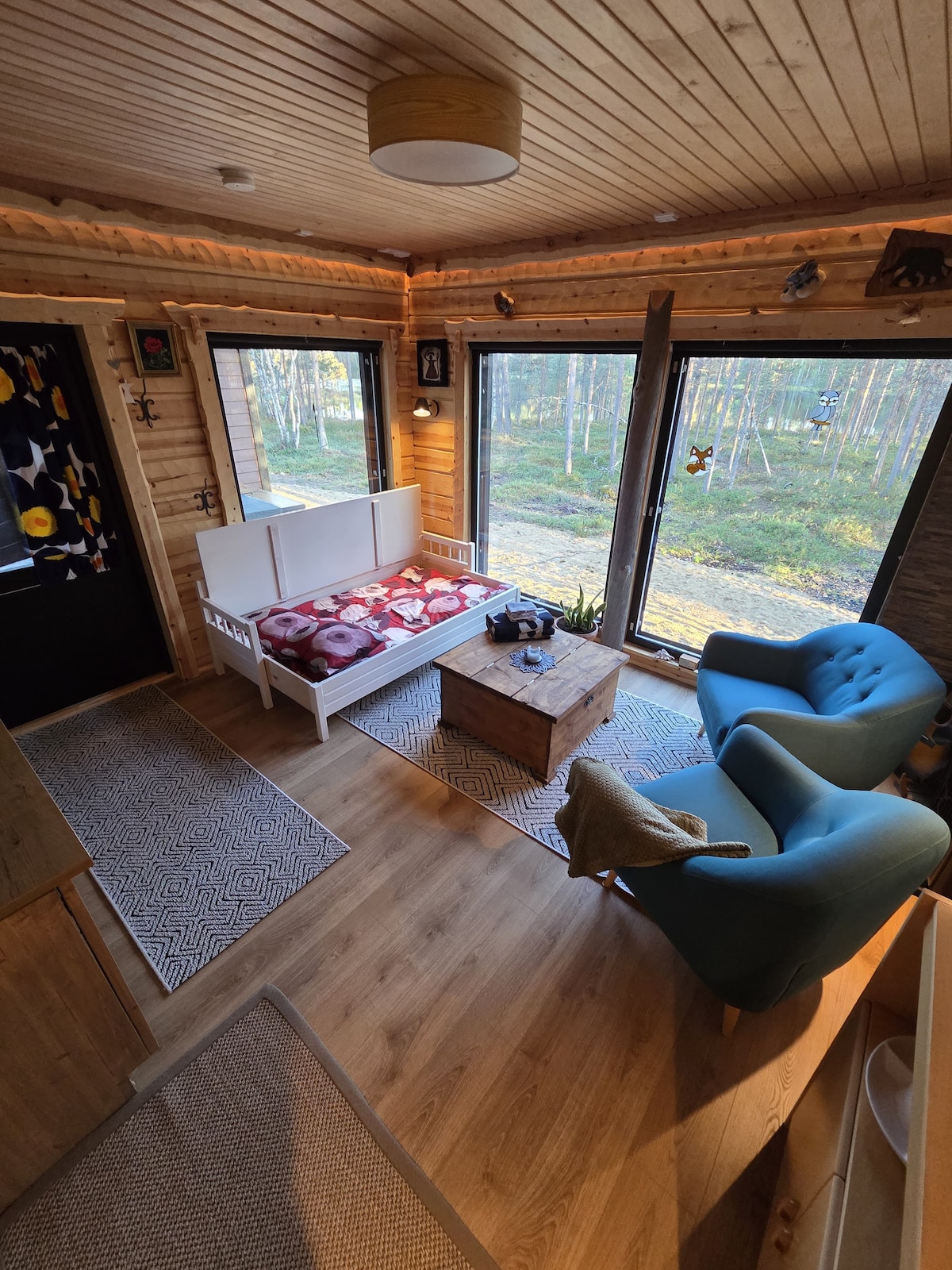 Lähellä luontoa yhden huoneen järvenrantamökissä