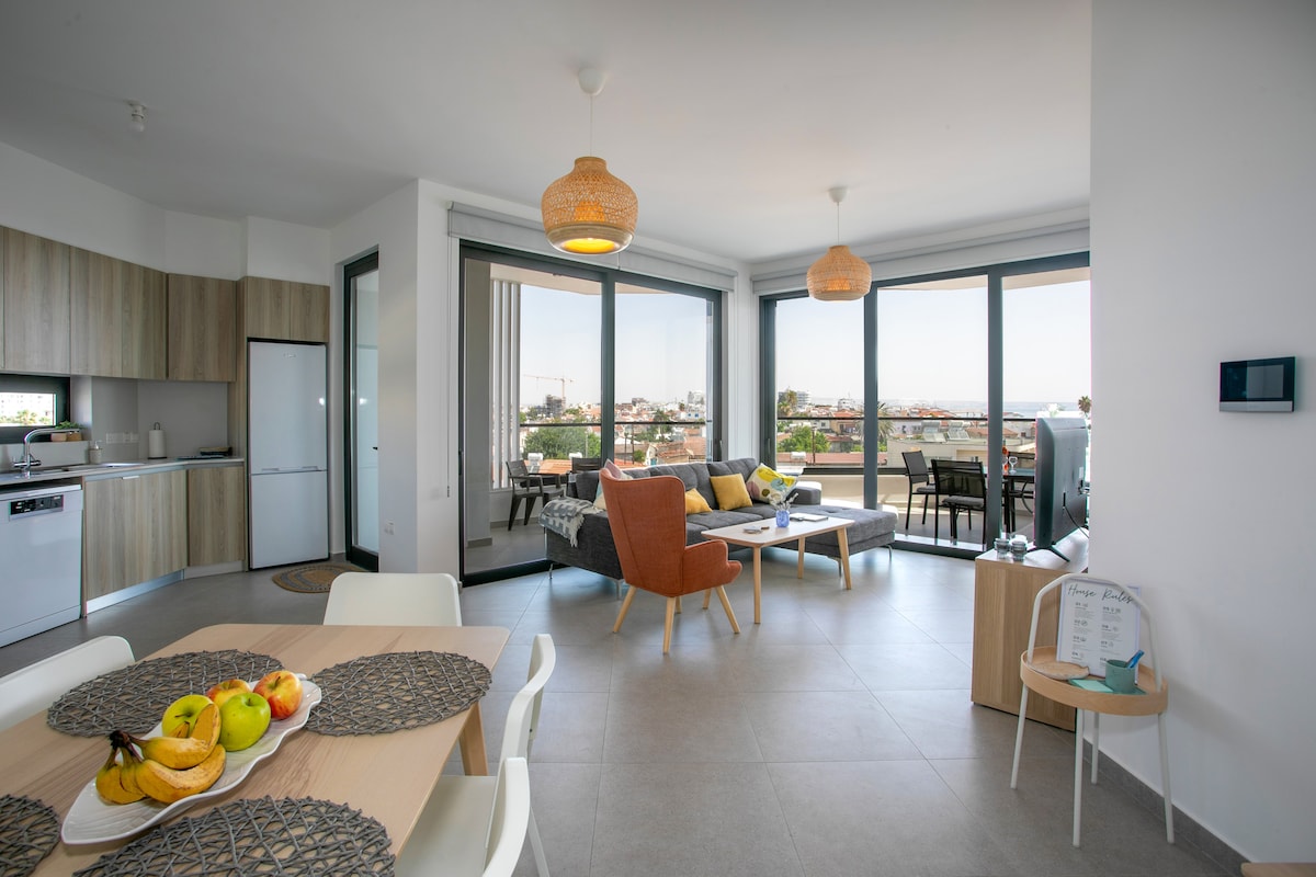 Herää panoraamanäkymään merelle ja kaupunkiin yksityiseltä terassiltasi, jossa on riippumatto – vain 3 minuutin kävelymatka Finikoudes Beachille. Nauti modernista huoneistosta, jossa on täysin varustettu keittiö ja tilava oleskelutila. Rentoudu terassillasi, kun meri kimaltelee päivällä ja taivas hehkuu auringonlaskun aikaan. Nuku mukavasti ilmastoiduissa huoneissa ja työskentele tehokkaasti työtilassa, jossa on näyttö ja nopea wifi. Rantakadun, ravintoloiden, kahviloiden, kauppojen, venesataman, yöelämän ja turvallisen katetun pysäköinnin vieressä.