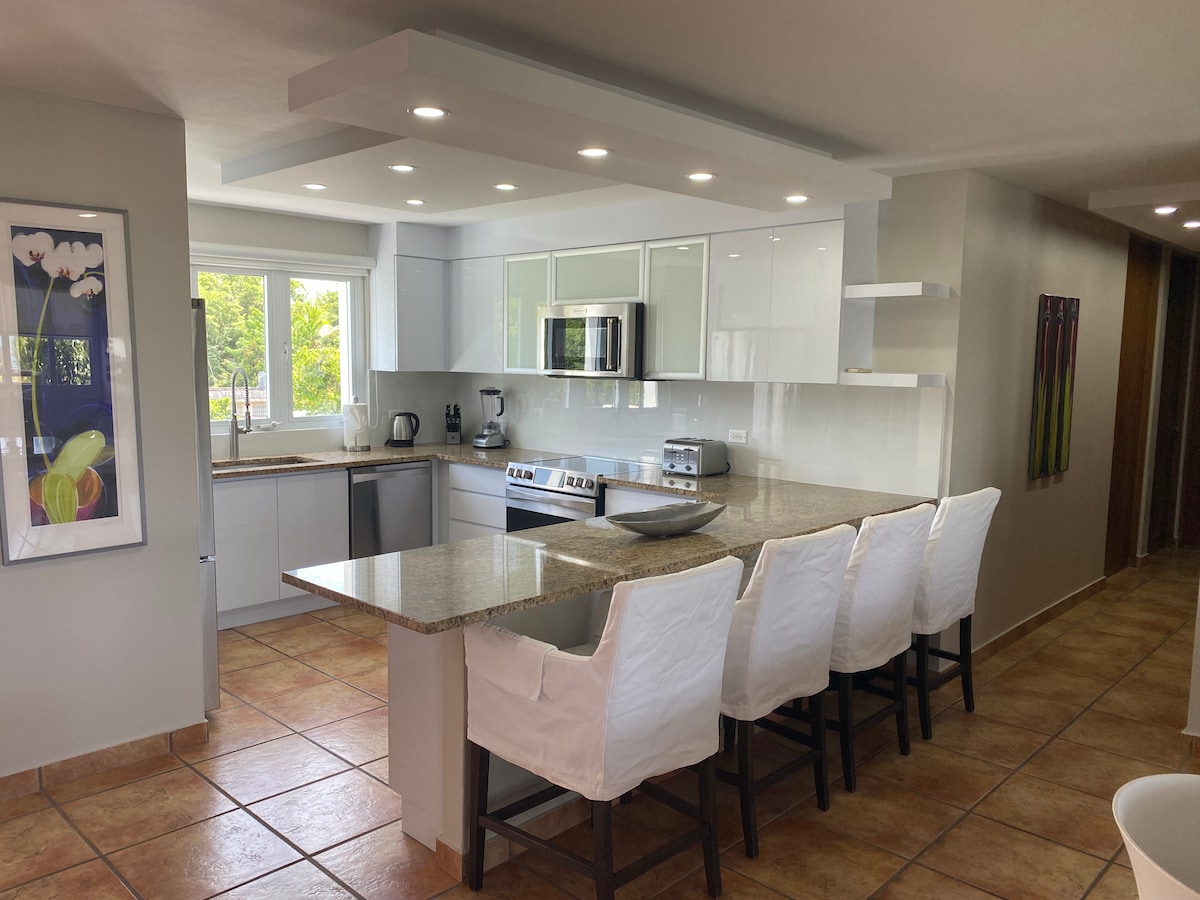 Yhden makuuhuoneen huoneisto, äskettäin remontoitu queen-vuoteella, täysikokoisella vuoteella, ilmastoinnilla, täydellisesti varustetulla keittiöllä, sohvalla ja terassilla, jolta on mukava panoraamanäkymä Las Croabasin lahdelle, Palominon saarelle. Vieques ja Culebra. Vain 5 minuutin päässä Seven Seasin kauniilta rannalta ja kävelyetäisyydellä kuuluisasta fluoresoivasta laguunista, ravintoloista ja vesitaksin noutolaiturista.