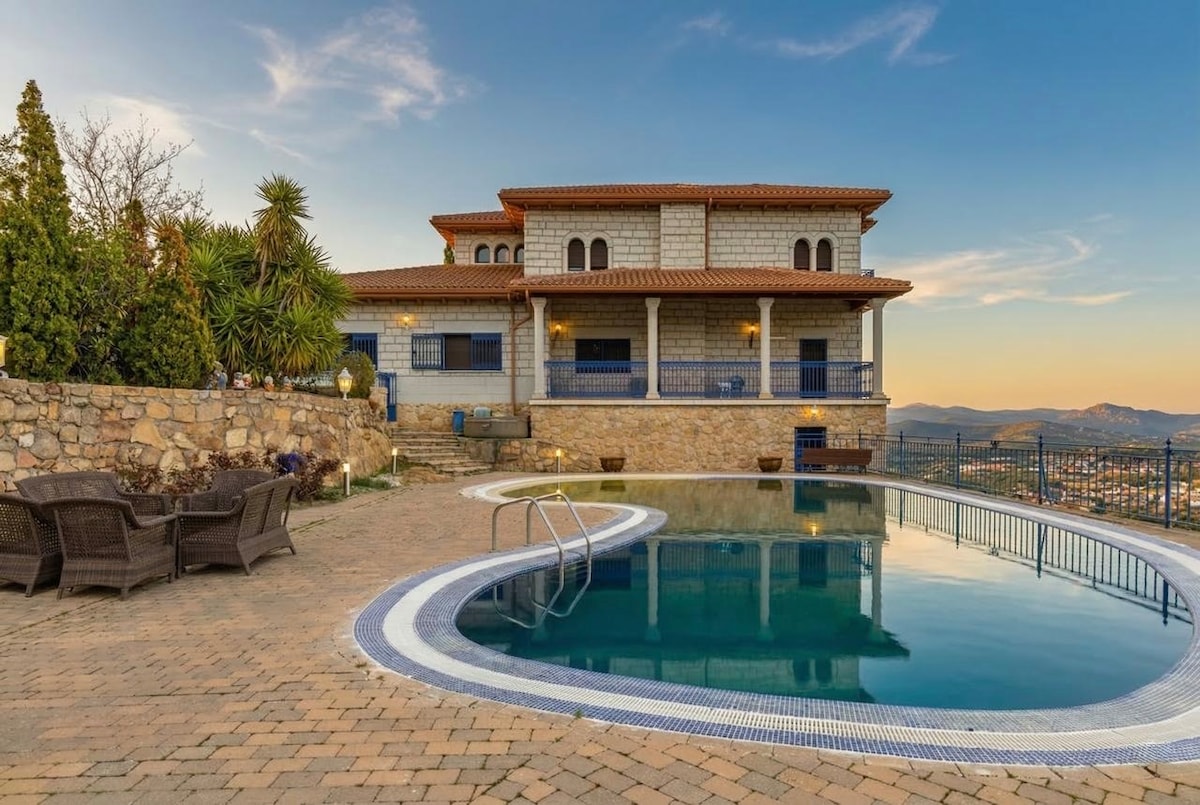 Huvila, josta on uima-allas- ja vuoristonäköala