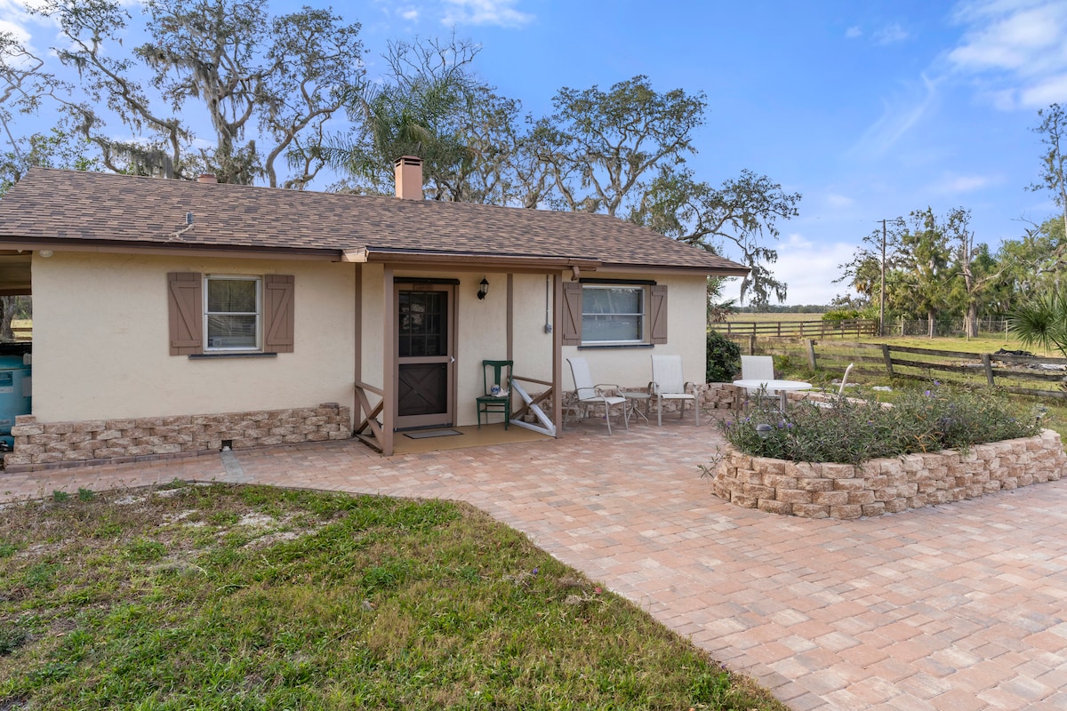 Relax, unwind and unplug at this cozy Old Florida-style country cottage! Here you are away from it all in peaceful bliss... but if you want to go out for dinner, it's an easy drive into town! Located on a beautiful 5 acre plot, this guest home is the perfect spot for your Florida getaway! Just 30 minutes from Siesta Key and 6 minutes from the entrance to Myakka State Park, you can see the best of Florida, both the swamps and the beaches, all in one day!