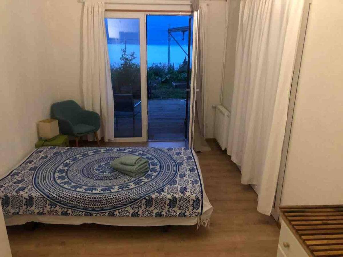 Hiljainen huoneisto rantahuvilassa, jossa on oma terassi ja pääsy järvelle kesällä. 7 km:n päässä Lausannesta, julkinen liikenneyhteys: Villetten asema: 5 min, bussilinja 9 ja supermarkkino: 10 min, Lutry järven varrella: 15 min. Park Place. Makuuhuone, jossa on 1 140x200-vuode ja 1 80x200-vuode, suuri keittiö, olohuone, jossa on parivuoteen vuodesohva (140x200) ja panoraamanäkymä. Ihanteellinen 4 hengen perheelle (5 pyynnöstä). Poreallas (käyttö määritellään majoittajan kanssa). Savuton kohde.