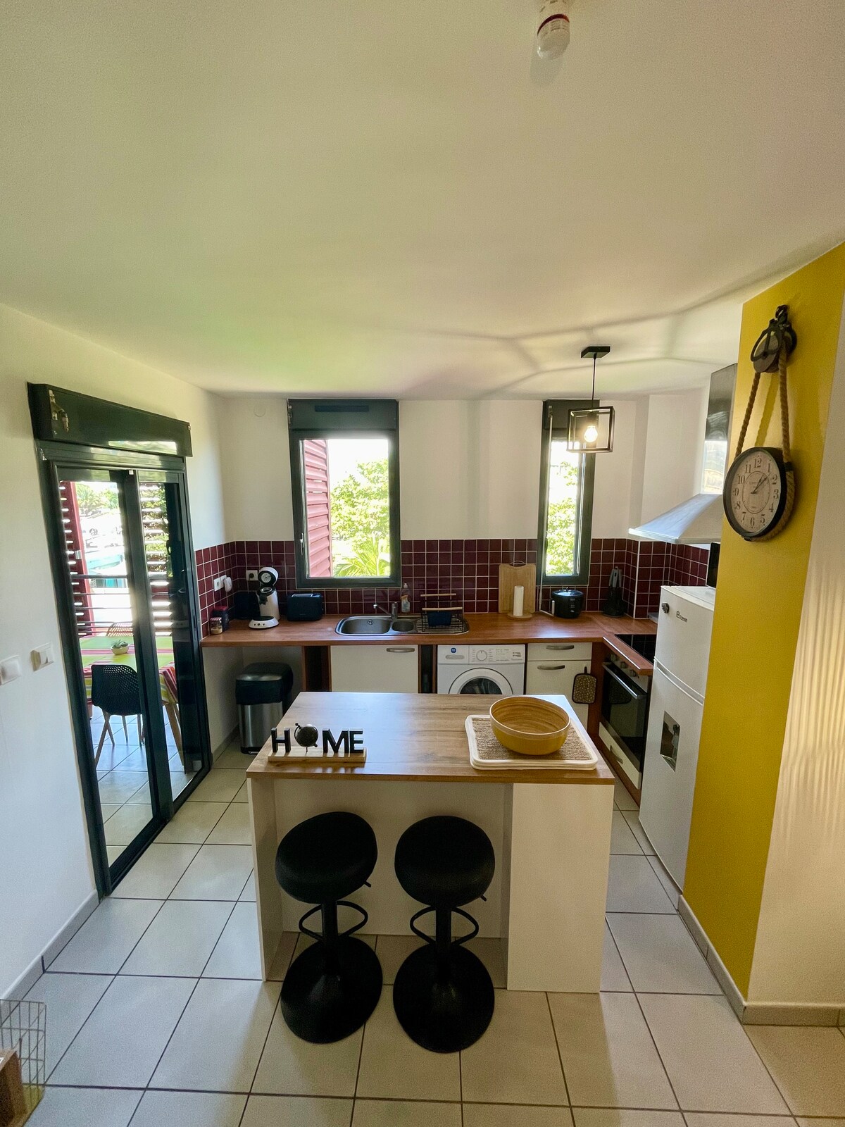 Täydellinen perheille tai pariskunnille, jotka ovat lomalla tai liikematkalla, sijaitsee kaupungin keskustassa ja lähellä kaikkia mukavuuksia. Ruokailuhuoneeseen/olohuoneeseen avautuvasta keittiöstä on upea merinäköala. Strateginen paikka tutustua villiin eteläosiin: Manapany Natural Basin, Grand Anse Beach, Langevin-joki, pesulavirrat ja patikointireitit.