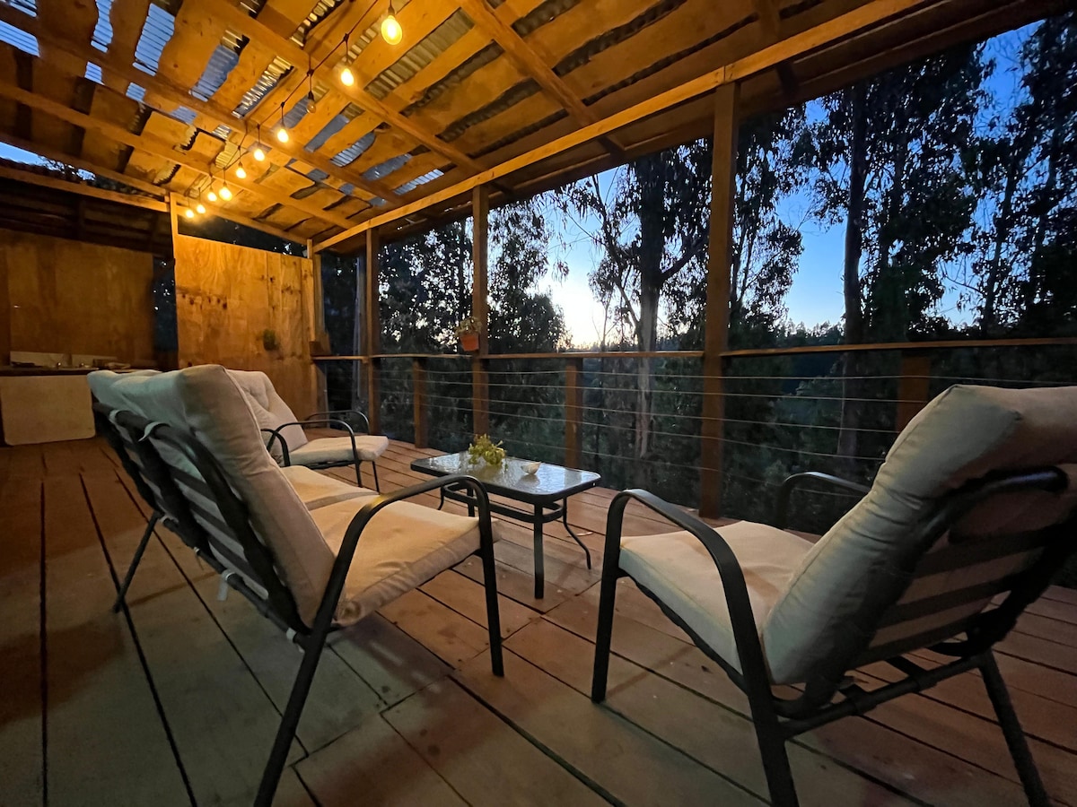 2 makuuhuonetta, 1 kylpyhuone. 1 parivuode, 1 kerrossänky, 1 sisäänvedettävä vuode, 1 yhden hengen vuode. Sijaitsee luonnon helmassa, lähellä Lanalhue-järveä,kaukana melusta ja 15 minuutin päässä Cañeten keskustasta, matkalla Contulmoon. Siellä on pelejä lapsille ja purkkeja lisämaksusta. Pyyhkeet ja lakanat eivät sisälly hintaan Meillä ei ole suoraa pääsyä järvelle.
