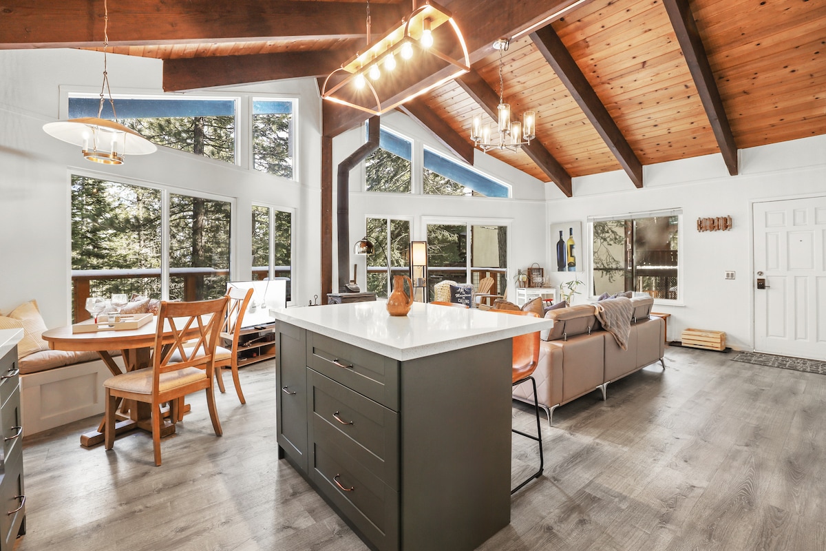 Äskettäin remontoitu, ja siinä on korkealuokkaisia ja moderneja design-yksityiskohtia sekä kylpyallas takaterassilla! Yksikerroksinen ja avoin oleskelutila, keittiömestarin keittiö, jossa on huippuluokan kaasuvalikoima, suurempi ruokapöytä ja lisäistuimet aamiaisbaarissa, oven avautuminen tuoreille mäntyille, suuri terassi ja suuri avoin alue, jossa lapset voivat leikkiä. Lapset, jotka lukevat loftia, kerrossängyt, pelihallipöytä, älytelevisiot. Sijaitsee Tahoe Donnerin lomakeskuksen naapurustossa, jossa vierailla on pääsy uima-altaisiin, saunoihin, kuntosalille ja muihin mukavuuksiin.