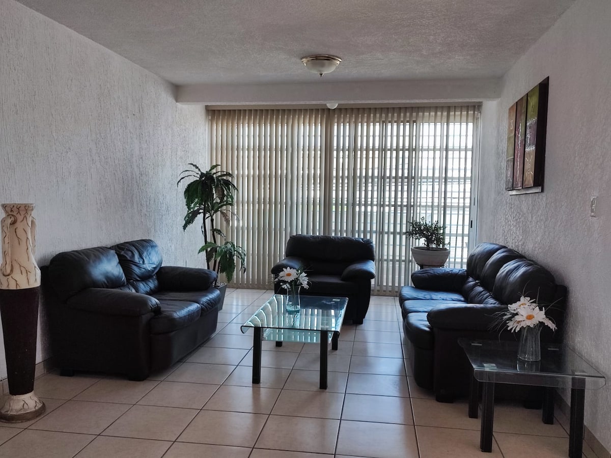 Nauti mukavasta, turvallisesta ja modernista majoittumisesta tässä kahden makuuhuoneen huoneistossa, joka sijaitsee yhdellä Leónin, Guanajuaton, eksklusiivisimmista alueista. Tila sopii hyvin työ- tai lomamajoittumisiin, ja siinä on seuraavat ominaisuudet: °Uima-allas rentoutumiseen °Yksityinen pysäköinti kahdelle autolle °Itsepalvelumyymälä rakennuksen alakerrassa °Nopea pääsy ostosalueille, ravintoloihin ja päätielle Täysin varustettu, jotta voit vain saapua ja nauttia.