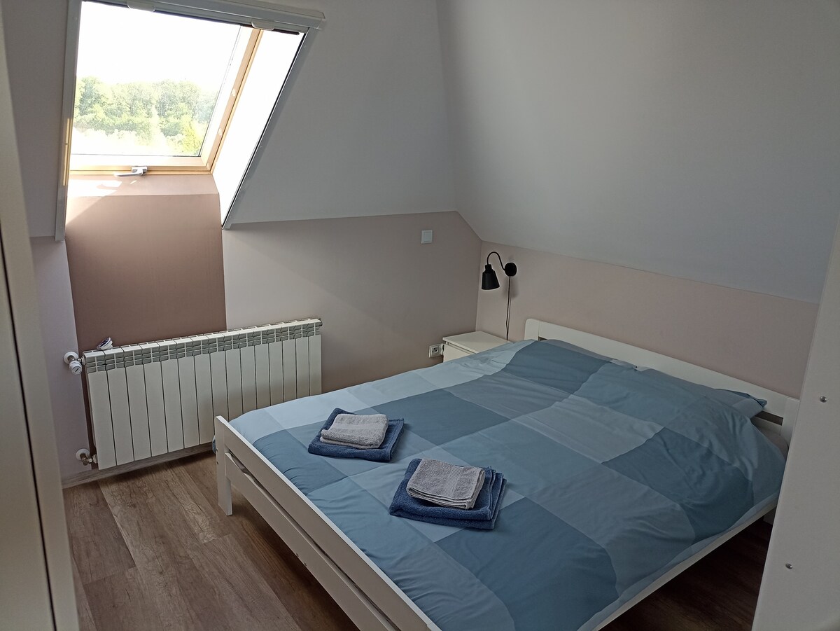 Talo sijaitsee kukkulalla, jolta on panoraamanäkymät ympäröivälle alueelle. Tämän talon suuri vetonaula on lämmitetty uima-allas (käytettävissä touko-lokakuussa) Uima-altaan ympärillä on terassi, jossa on mukavat aurinkotuolit, ihanteellinen paikka rentoutua. Lisäksi uima-altaan lähellä on katettu patio ja paljon tilaa mukavaan rentoutumiseen. Lähistöllä on Balaton-uima-allas. Paikka on myös lähellä Enegylandiaa, joka on 20 minuutin päässä, ja Krakovaa, joka on 30 minuutin päässä.