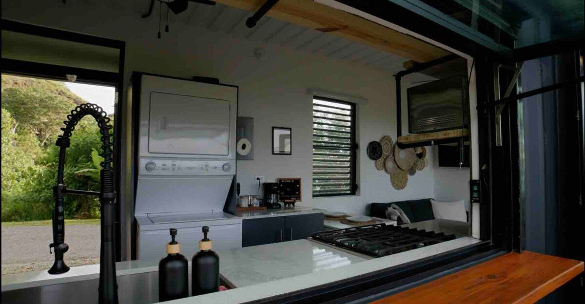 Rauhallinen lomakohde rentoutumiseen ja luonnon tai kumppanin kanssa yhdessä olemiseen. Tässä harkitusti suunnitellussa konttitalossa on kaksinkertainen suihkukylpyhuone, jossa on kattoikkuna, täysin varusteltu keittiö ja viihtyisä sisä- ja ulkotila. Nauti yksityisestä porealtaasta, nuotiopaikasta, panoraamaterassista ja grillausvalmiista patiosta, joka on täydellinen auringonlaskuihin ja tähtien katseluun. Luonnon ympäröimä, rauhallisella alueella vain muutaman minuutin päässä parhailta rannoilta ja ravintoloista.