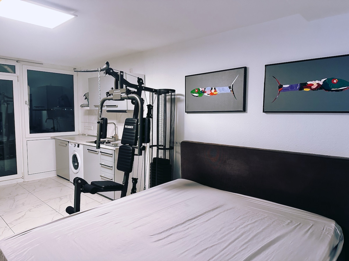 Moderni ja äskettäin remontoitu 1 huoneen asunto halutussa ja keskeisessä Düsseldorf-Derendorfin kaupunginosassa. Asunnossa on kaikki mitä tarvitset voidaksesi tuntea olosi mukavaksi. 55 tuuman TV, nopea WiFi-yhteys, suuri parveke, kylpyhuone kylpyammeella takaavat mukavan oleskelun. Asunnossa on nukkumapaikat enintään 2 henkilölle. Julkinen liikenne on noin 200 metrin kävelymatkan päässä. Sieltä pääsee 10 minuutissa vanhaan kaupunkiin, Reinille, messualueelle, lentokentälle.