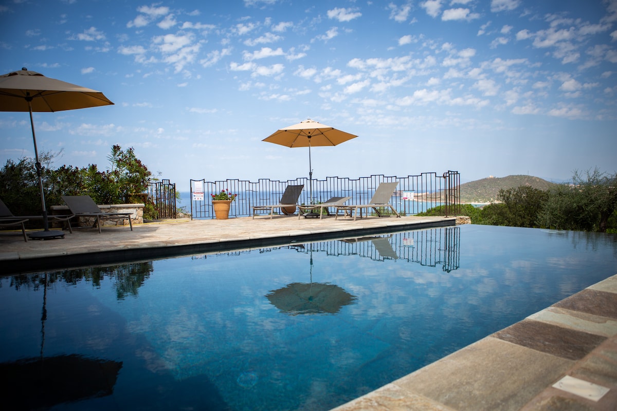 Viehättävä huvila, josta on merinäköala ja uima-allas