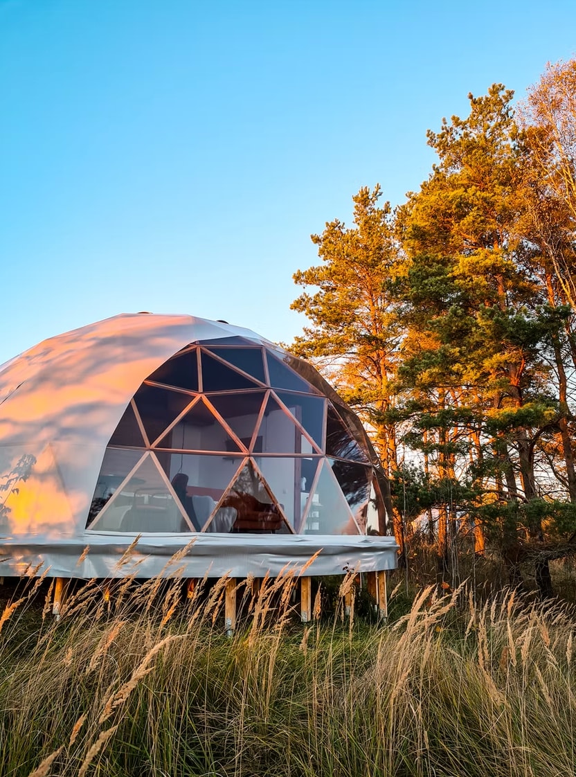 Kupolitalomajoitusten suositut mukavuudet paikassa Liettua