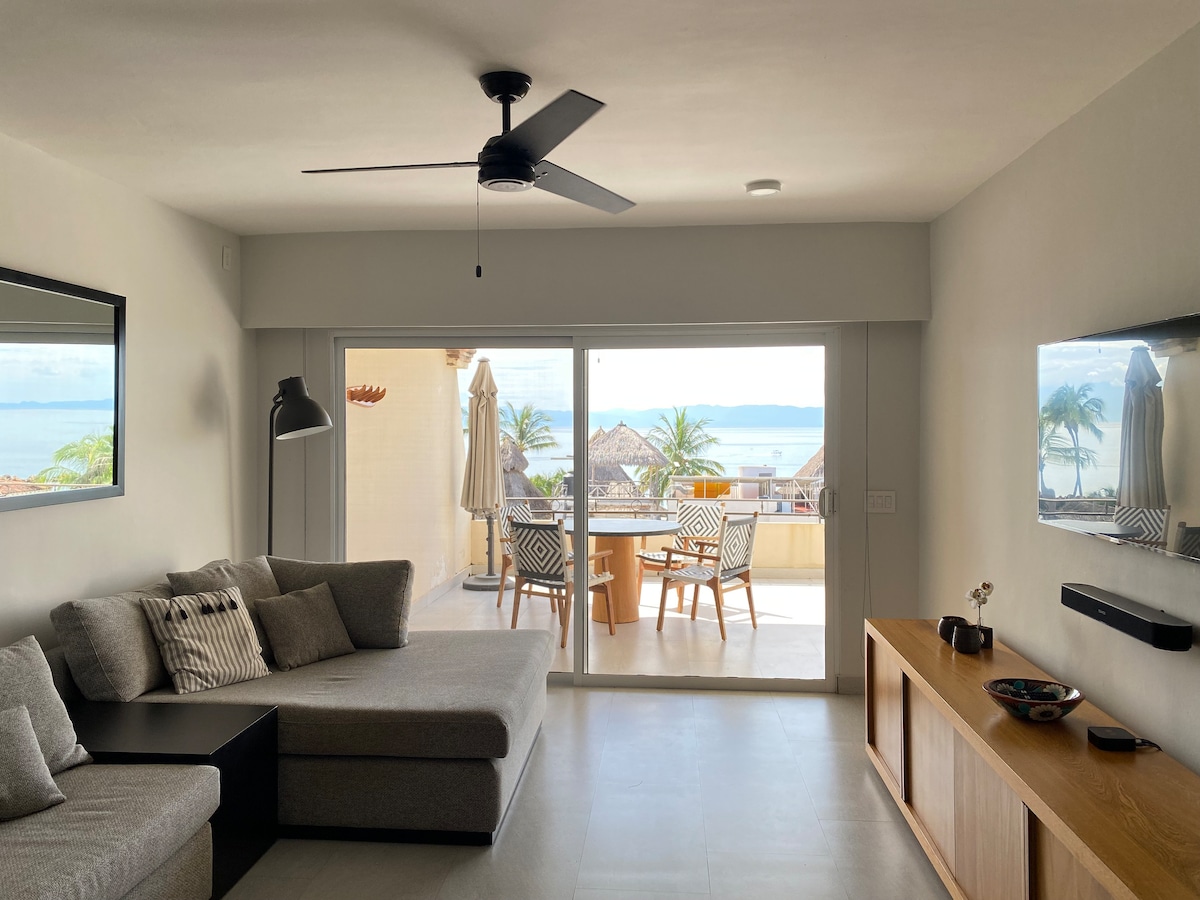 Merinäkymät, auringonlaskut katolla ja Puerto Vallartan parhaat puolet aivan kynnykselläsi. Tämä moderni 1BR-huoneisto sijaitsee korkealla 11. kerroksessa ylellisessä 105 Sail View -rakennuksessa Zona Romántican sydämessä – kolme korttelin matkan päässä Playa Los Muertosista. Ulkona on kahviloita, gallerioita, rantaklubeja ja yöelämää... ja sitten voit palata kotiin nauttimaan rauhasta, korkeasta sijainnista ja upeista näkymistä Tyynellemerelle. Aamukahvi parvekkeella, iltapäivät infinity-altaalla, iltaisin auringonlaskun katselua meren yllä kelluen.