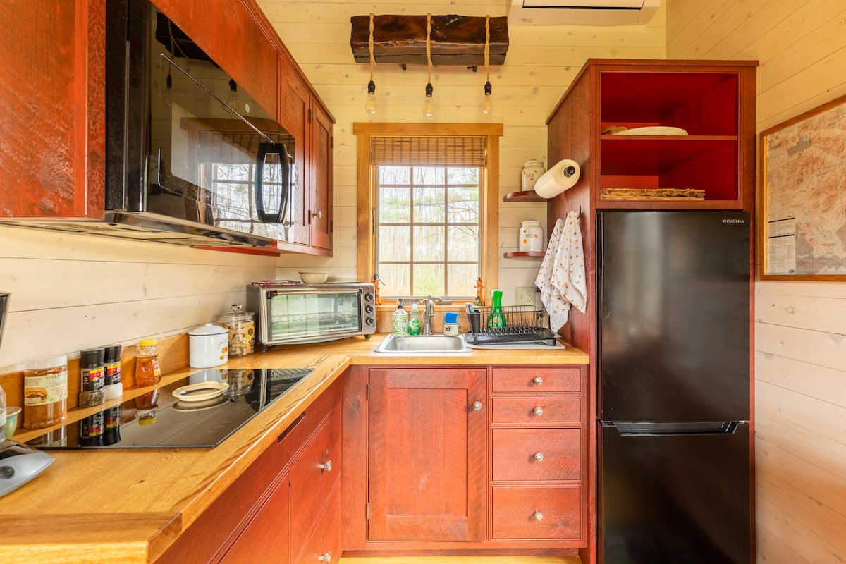 Äskettäin rakennettu kahden makuuhuoneen viehättävä mökki omalla yksityisellä pihallasi. Koiraystävällinen ja mahtava paikka lasten leikkimiseen! Sisäänrakennettu kuisti, jossa on kattotuuletin rauhallista nokosemista varten, nuotiopaikka yökertoja varten avotaivaan alla. Kaksi televisiota, langaton internet sadepäivänä. Mansikka- ja mustikkapenkkejä aivan etuovesi ulkopuolella! Mökissä on 4 makuupaikkaa: queen-vuode alemmalla tasolla ja kaksi parisänkyä loftissa. Erityisjärjestelyillä suurempi ryhmä voitaisiin majoittaa tilavalle pellolle.