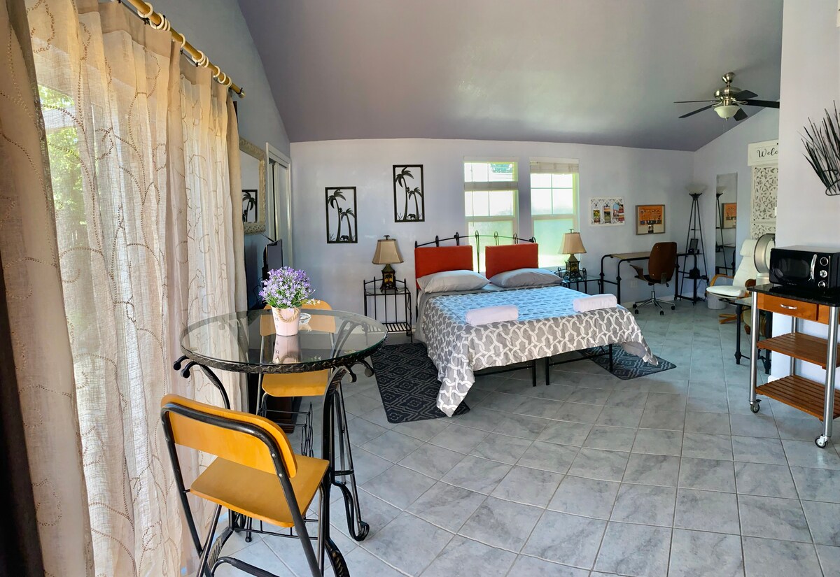Hiljainen, ylellinen 37 neliömetrin asuinyksikkö (1 makuuhuone/1 kylpyhuone) sijaitsee kauniilla Dublin Ranch Golf Clubilla. Sviitti on osa isompaa taloa, mutta se on täysin yksityinen ja siinä on erillinen sisäänkäynti. Studiohuoneessa on laadukkaat kalusteet, kuten queen-vuode, lipasto, toimistotyöpöytä ja -tuoli, sohva ja taulutelevisio. Vaikka täydellistä keittiötä ei ole, meillä on Keurig-kahvinkeitin, minijääkaappi ja mikroaaltouuni yksikössä. Meillä on Disney+, Hulu ja Netflix, joista voit nauttia. Ei lemmikkejä, kiitos.