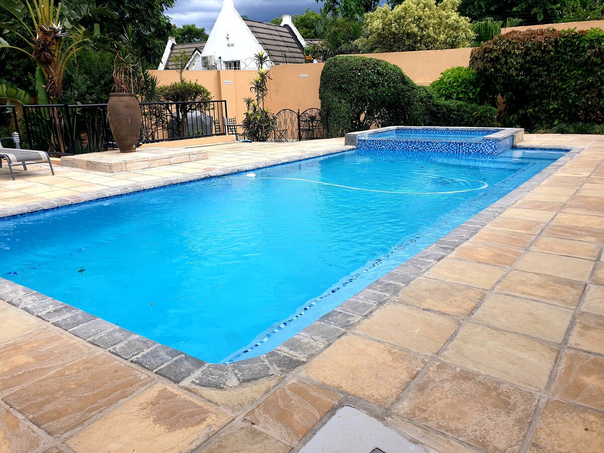 Rentoudu tässä rauhallisessa lomakohteessa, joka sijaitsee turvallisessa ja hiljaisessa Dalriach Westin esikaupungissa, vain muutaman minuutin päässä Mbabanen keskustasta, 15 minuutin päässä Ezulwinista ja vain 5 minuutin päässä Eswatinin YK-rakennuksesta. Kävelyetäisyydellä Eswatini Fun Zone -trampoliinipuistoon ja 2 minuutin päässä Waterford Kamhlabasta. Nauti helposta pääsystä laadukkaisiin ravintoloihin, läheiseen ostoskeskukseen ja kaikkeen välttämättömään. Täydellinen lyhytaikaisille ja pitkäaikaisille matkailijoille tai ammattilaisille, jotka etsivät rauhallista ja kätevää tukikohtaa.