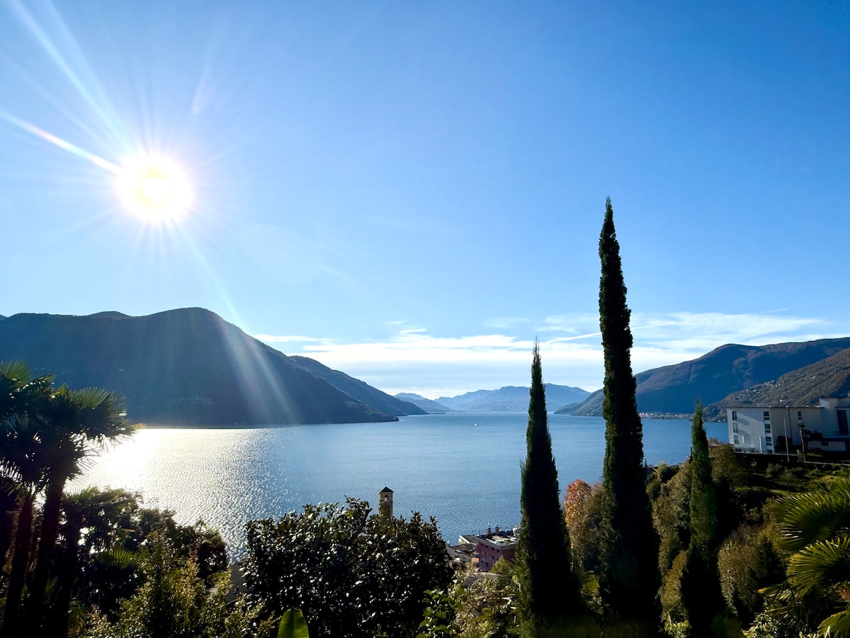 Moderni 2,5 huoneen design-huoneisto, josta on upeat panoraamanäkymät Maggiore-järvelle – Brissagon saarille ja Asconaan sekä pitkälle Italiaan. Yksityinen, upeasti kukkiva puutarha, jossa on oleskelunurkkaus ja terassilla istumapaikkoja ticinolaisessa tyylissä, on täynnä monia eteläisiä kasveja ja levittää välittömästi lomatunnelmaa. Yhteinen uima-allas, jossa on auringonottoalue ja järvinäkymä, lupaa viileän tunnelman kuumina päivinä.