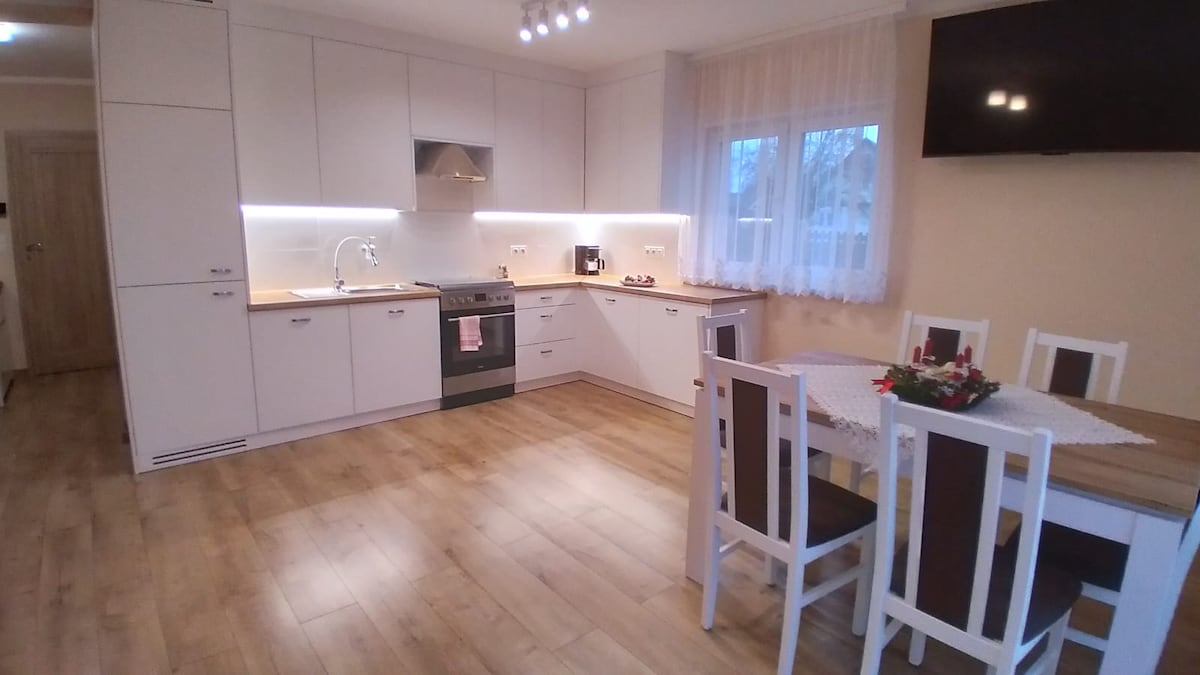 Talomme sijaitsee 2 km: n päässä Zwierzyniecin keskustasta, tontti sijaitsee metsän aitauksessa ja tarjoaa levon (ja työn) mukavuutta. Tarjolla on monia mukavuuksia, kuten wifi, tv, polkupyörät, riippumatot, aurinkotuolit, grillin huvimaja, katettu patio, takka. Voit käyttää myös kotimme suomalaista saunaa. Talon vieressä on Green Velo -pyöräreitti. Lähialueella sinulla on mahdollisuus tutustua Roztoczen kauneuteen. Kutsumme sinut KOTIIMME, jotta sinä ja ystävämme lumoudutte paikan taikuudesta.