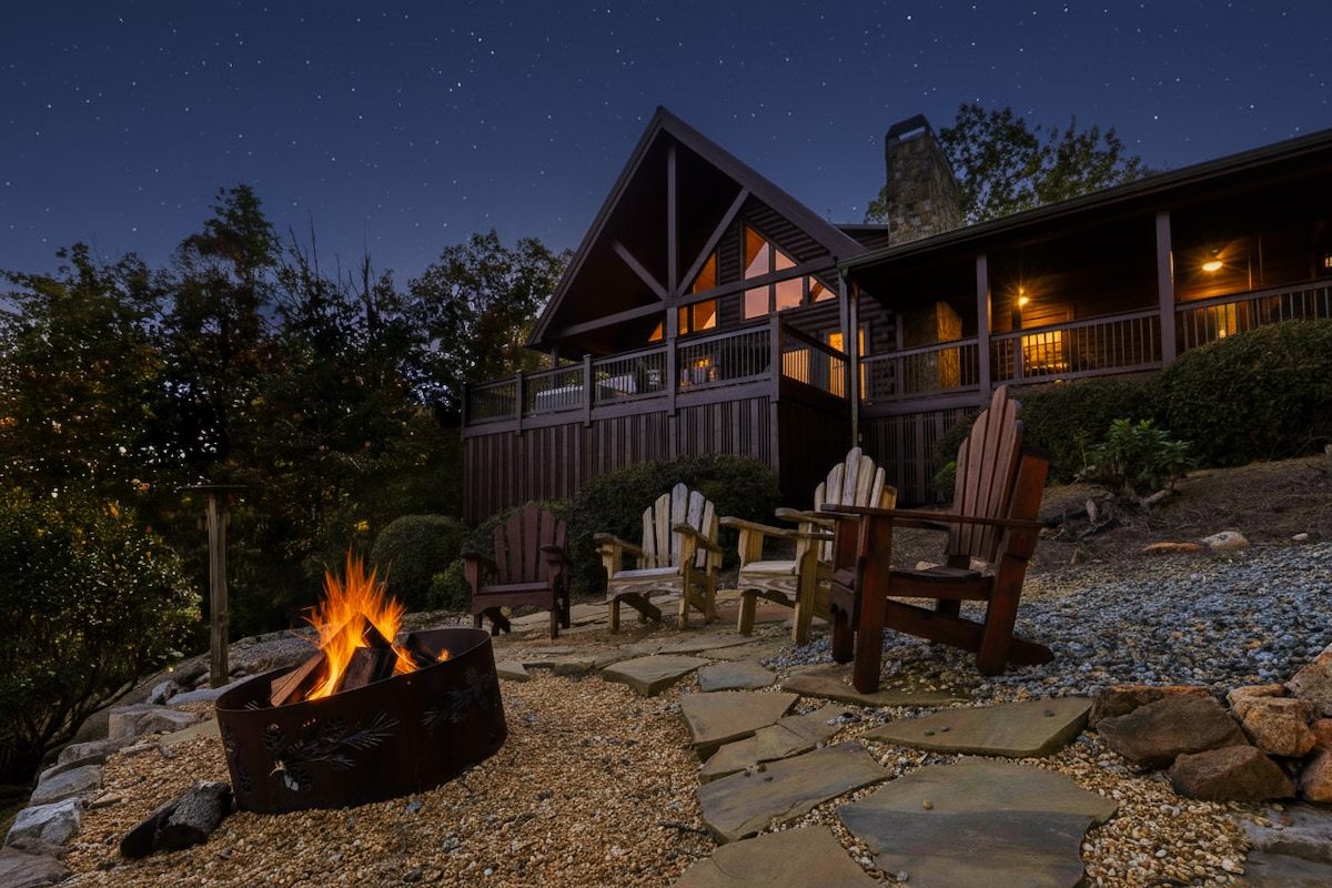 Get away & enjoy scenic mountain views in this luxury 3-bedroom, 2-bath cabin set on 10 acres. The cabin is minutes from Downtown Dahlonega, wineries, breweries, Big Creek Distillery, North Georgia Zoo, and Chestatee Wildlife Preserve. The house is equipped with a gas fireplace, exterior firepit, Big Green Egg, 85" TVs, and arcade with 5,000 classic games. While it's a favorite amongst wedding goers, this home is set up perfectly for the whole family, with a dedicated kids' playroom. LIC: 4620