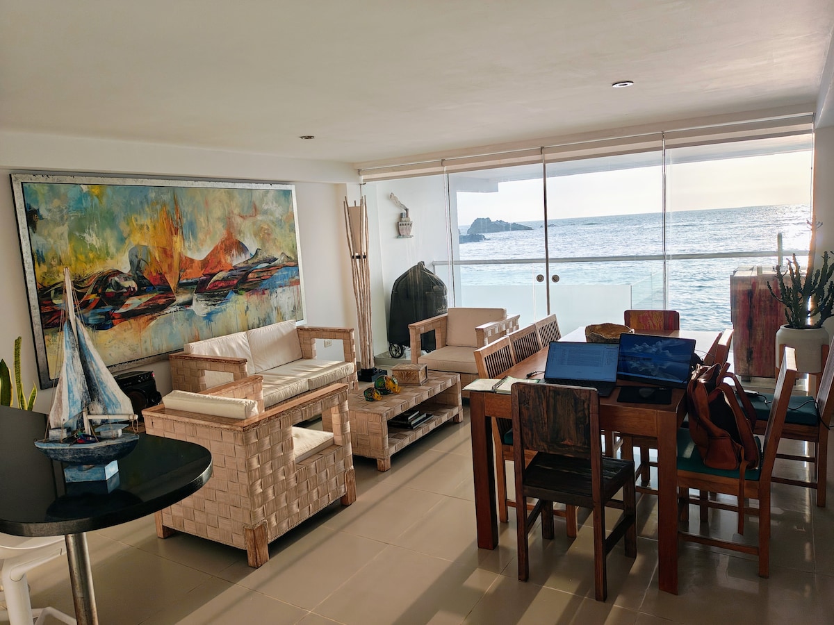 Rantatalo puiston edessä yksityisessä osakehuoneistossa Playa Azulissa, 15 metrin päässä rantakadulta, suuri terassi, jossa on suuri grilli, lasten uima-allas merinäköalalla. Tarjolla on yhteisiä urheilualueita, uima-allas ja pelejä lapsille, uima-allas ja pelejä aikuisille, uima-allas ja aikuisten pelejä, ravintola ja tori.(kesäkausi) Sijaitsee 5 minuutin päässä Cerro Azulista, 15 minuutin päässä Tottuksesta ja 20 minuutin päässä Wong Aasiasta. Ihanteellinen pandemian viettämiseen perheenä, siellä on televisio ja suora tv, jossa on HBO Premium -paketti, valinnainen WIFI 24h-valvonta.