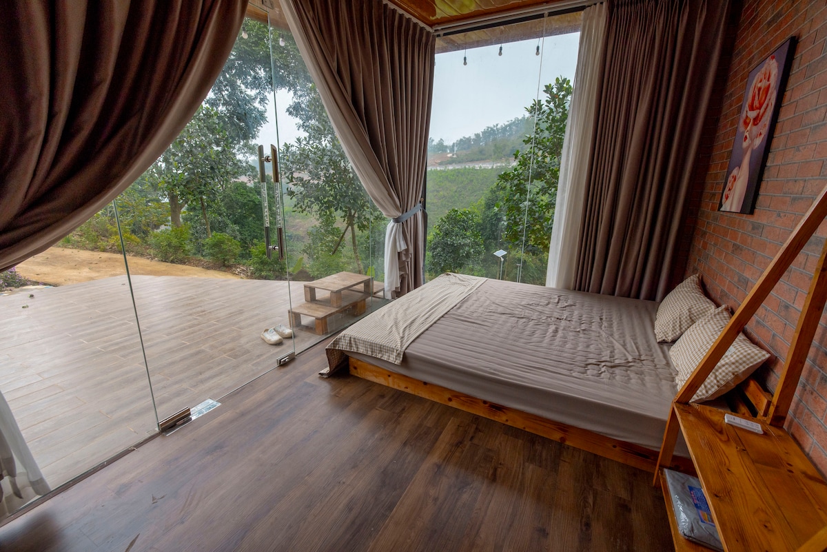Pakene kaupungin hälinää ja rentoudu bungalowissamme, joka sijaitsee Thôn Ngànhissa, Liên Sơnissa, Hòa Bìnhissä – vain 35 km:n päässä Hanoista. Tätä kohdetta ympäröivät rehevät vihreät vuoret ja rauhalliset laaksot, ja se tarjoaa täydellisen tasapainon luonnon, mukavuuden ja rauhan välillä. Herää lintujen lauluun, hengitä raikasta vuoristoilmaa ja nauti upeista panoraamanäkymistä joka kulmasta. Viihtyisä tilamme on ihanteellinen perheille, ryhmille tai kaikille, jotka etsivät rentouttavaa lomaa tai etätyöretriittiä.