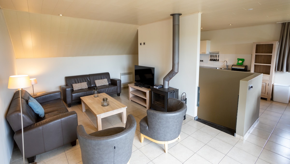 Large, quiet and bright flat, situated in the middle of nature (but very easy to reach by car). Completely renovated and integrated in a century-old house. Spacious kitchen open to the living room. High-quality design bathroom with infrared-cabine. Large, park-like outdoor area offering both sunny and shady spots to relax. Isolated location, unobstructed view. Parking spaces, bicycle storage and barbecue facilities. Ideal for nature lovers and those who want to become one.
