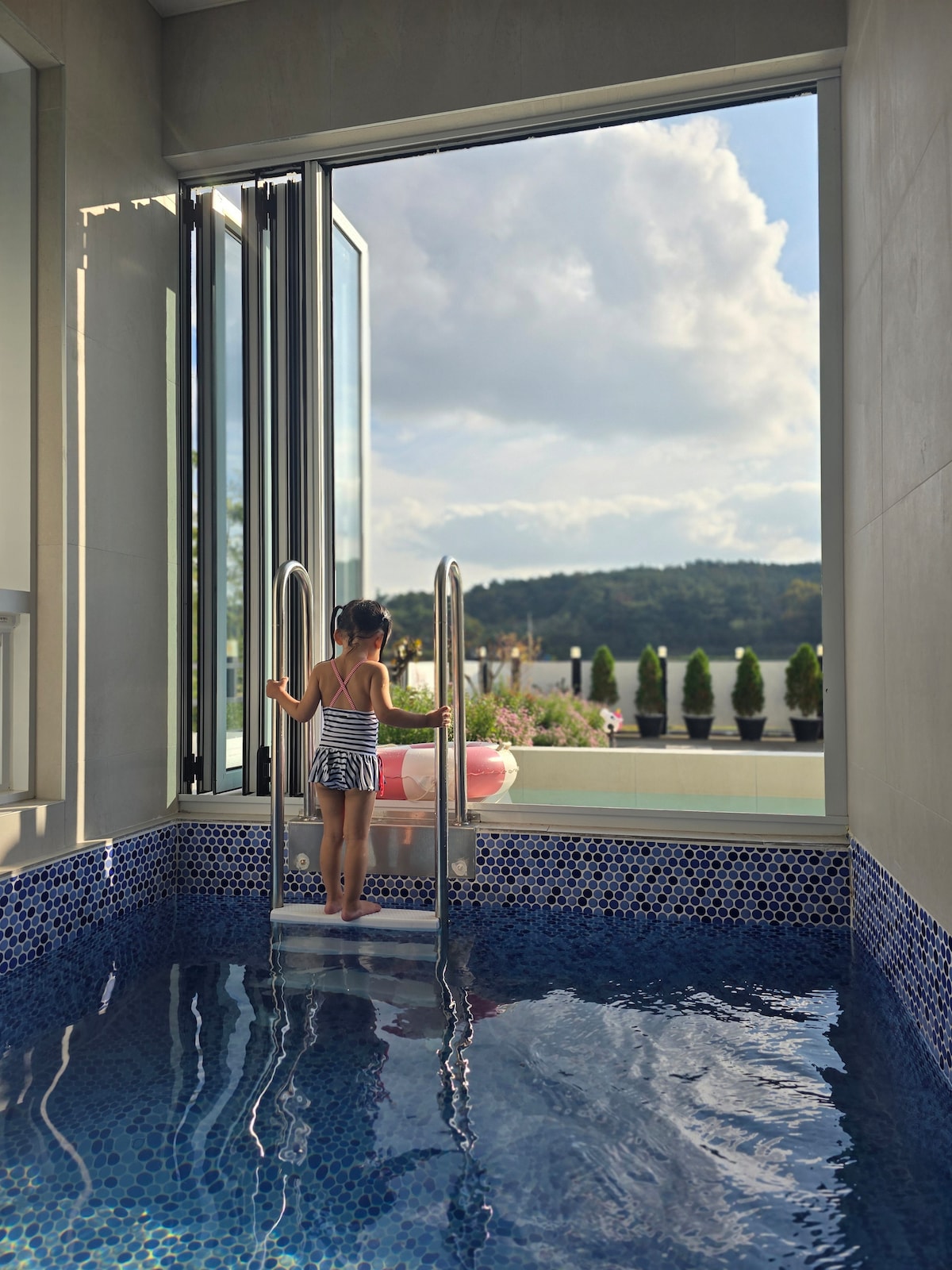 Dawn Gyeongju Pool Villa Pension on yksityinen majoitus lähellä tärkeimpiä nähtävyyksiä 10 minuutin päässä Hwangnidan-gilistä, Donggungista ja Woljista 10 minuutin sisällä ja Bomun Complex 10 minuutin sisällä. The C-dong room is equipped with a private barbecue and private poreallas, so you can spend a cozy and relaxing time with couples, families, and friends. Niille, jotka haluavat mieluummin oman tilamme kuin paljon ihmisiä, Niille, jotka haluavat jättää emotionaalisen kuvan emotionaaliseen majoitukseen, Vieraile luonamme, jos haluat parantua lämpimästi sisäporealtaassa:)