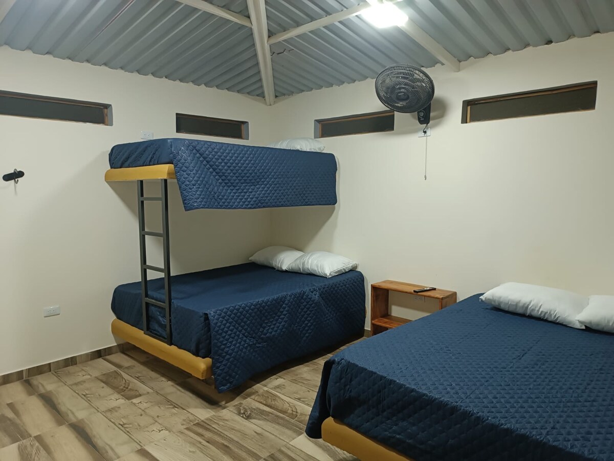 Kaunis mökki, joka sijaitsee maaseudulla ja jossa on kaikki bioturvallisuusprotokollat, kansallinen matkailurekisteri, on rauhallisella alueella, jonka avulla voit olla yhteydessä luontoon, koska meillä on yli 17 erilaista lintua, lisäksi se sijaitsee etuoikeutetulla alueella, lähellä alueen tärkeimpiä nähtävyyksiä. Mökki sijaitsee maaseutukompleksissa, ja siinä on keittiövälineet, kalustettu, satelliitti-tv, uima-allas kompleksissa ja pelihuone.