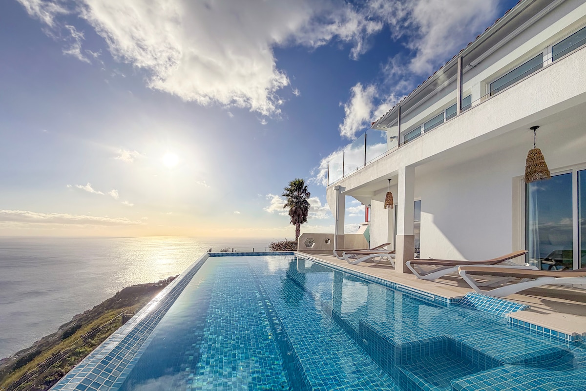 Tässä upeassa, modernissa, yksityisessä huvilassa Miradouro da Baleia (Whale Watchtower) on joitakin saaren parhaista meri- ja vuoristonäkymistä, äärettömän uima-altaan ja sijaitsee ensiluokkaisessa paikassa, jota ympäröivät upeat kalliot, viljelysmaat, banaaniviljelmät ja viinitarhat. Se on huolellisesti ja tyylikkäästi kunnostettu/rakennettu vuonna 2018 tarjoten ainutlaatuisen kokemuksen portugalilaisesta kesätyylisestä majoituksesta!