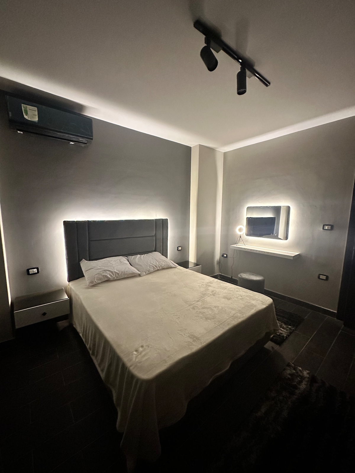 Mitä tämä kohde tarjoaa • 🛏️ 2 makuuhuonetta (1 päämakuuhuoneen kylpyhuone) + vuodesohva • Majoittaa jopa 6 vierasta • ✨ Uusi ja mukava modernilla viimeistelyllä • ❄️ 3 lämmintä ja kylmää ilmastointilaitetta + upouudet kodinkoneet • 📺 65 tuuman älykäs Google TV • 🌐 Nopea valokuituyhteys • 🍽️ Täysin varusteltu keittotila • 🛋️ Suuri oleskelu- ja ruokailutila • 📍 3 min Suez Roadille • 8 min Madinatyyn ja Open Air Malliin