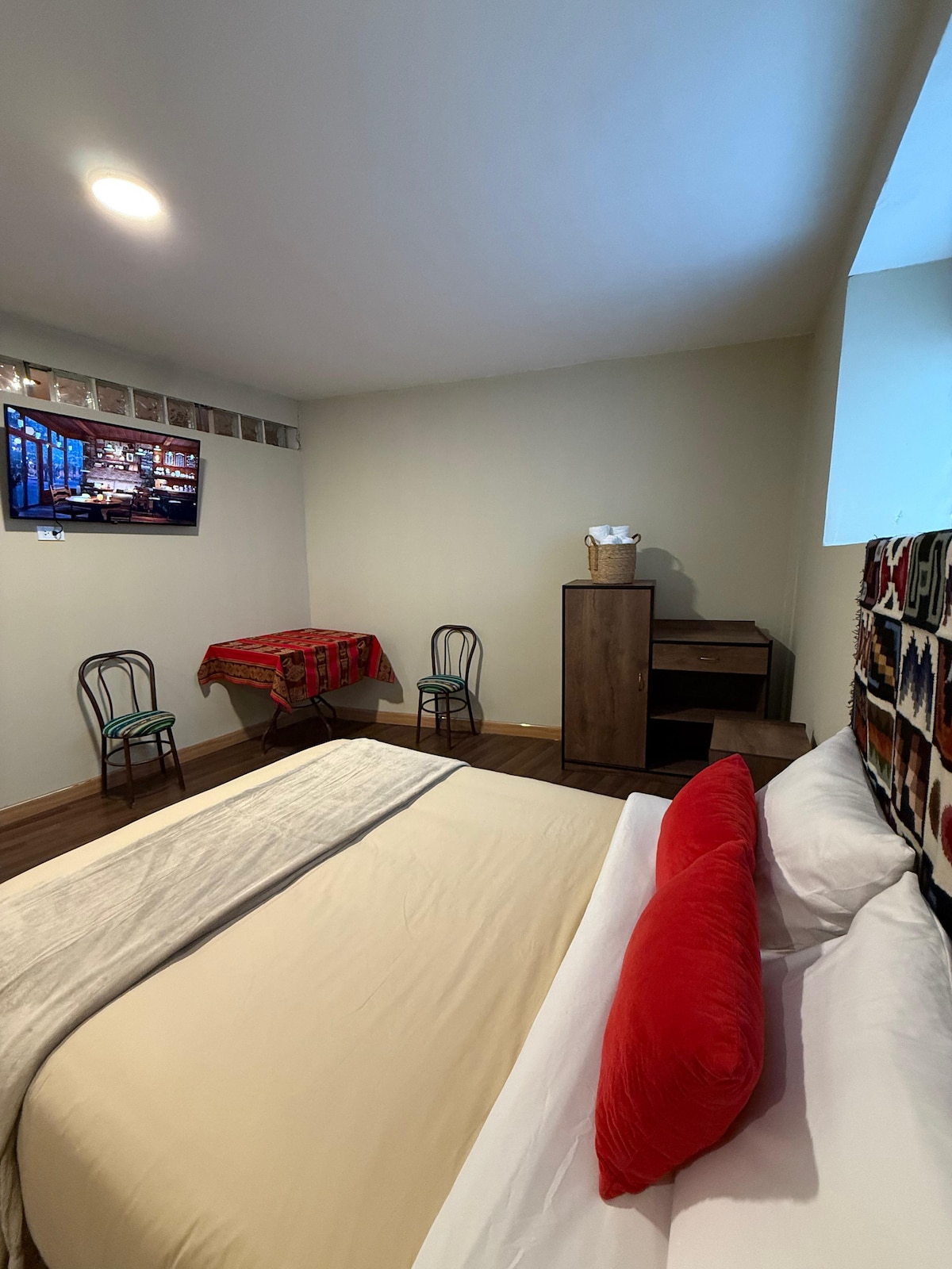 Majoitu tässä tyylikkäässä ja keskeisellä paikalla olevassa toisessa kerroksessa sijaitsevassa huoneistossa. Vain muutaman askeleen päässä markkinoista, ravintoloista, kaupoista, Urubamban rautatieasemalta ja bussiterminaalista jne. Siinä on 1 makuuhuone, olohuone, ruokailutila, keittiö, kylpyhuone ja pesutupa. Sopii erinomaisesti lyhyisiin tai pitkiin majoittumisiin, ja nopea wifi sopii erinomaisesti digitaalisille nomadeille. Jos tarvitset kuljetuksia, retkiä ja henkilökohtaisia elämyksiä, älä epäröi ottaa meihin yhteyttä.