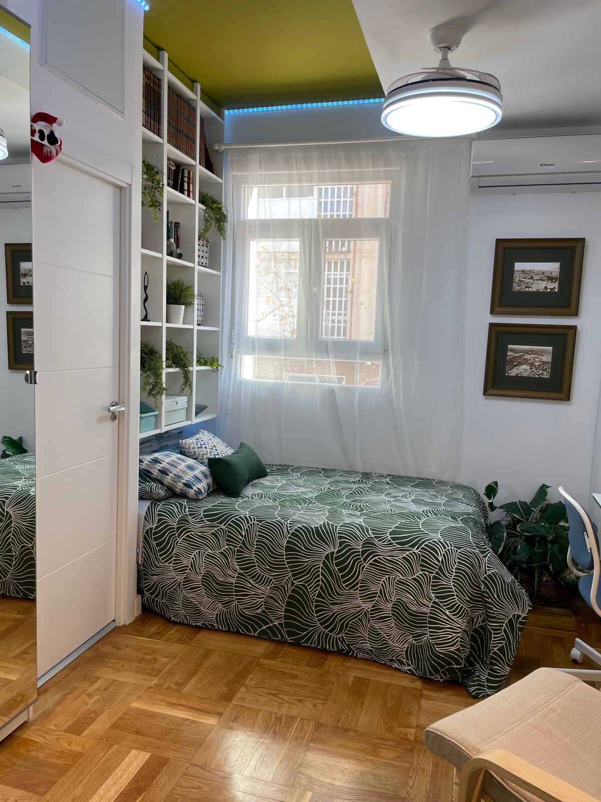 Bienvenidos a mi suite independiente! Se trata de una mini casa privada de unos 20m2 inspirada en el apartamento de Joey y Chandler de la serie F•R•I•E•N•D•S. Tanto si eres fan de la serie, como si buscas un lugar independiente, bonito y bien comunicado, este es tu sitio. Muy cerca del Metro, tranquilo y ¡con un altillo! Está pensado para dos personas, aunque hay un mueble-cama individual por si tienes que dormir una tercera. Total, podrían alojarse 3 adultos.