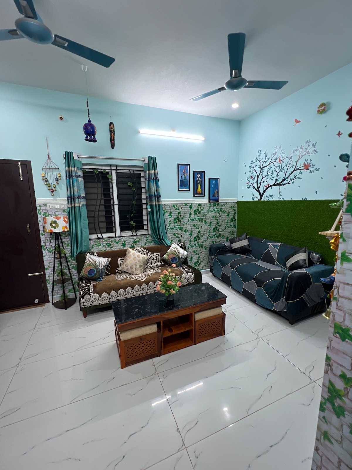 Mukava ja moderni 3BHK Airbnb vain 2,5 mailin päässä Madurain rautatieasemalta🚉 Täydellinen rauhalliseen majoittumiseen rauhallisessa asuinalueella🏡 Täysin kalustettu, 3 tilavaa makuuhuonetta🛌, pesukone, jääkaappi ja täysin varusteltu keittiö. Kohteessa on 8 kattotuuletinta🪭. Kohteessa on RO-vesisuodatin🚰, silitysrauta, poistopuhallin, kannettavan tietokoneen työpöytä, ruokapöytä, vedenlämmitin, nopea WI-FI🛜 ja keinu!__! Kohteessa on neem-puita kaikilla kolmella sivulla. 🌳 Turvallinen pysäköinti. 🅿️ Olohuoneessa ja yhdessä makuuhuoneessa on älytelevisiot.📺