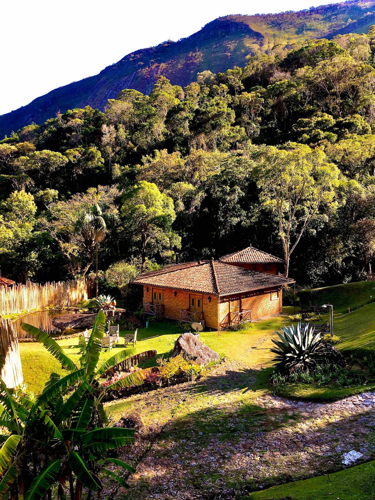 Turvapaikka niille, jotka haluavat uppoutua täysin luontoon. Talo on sijoitettu niin, että siitä on näkymät kaikkiin neljään suuntaan. Pico do Cuca, vesiputous, metsä ja upea auringonlasku. Heti sisäänkäynnillä tunnet hallitsemattoman uteliaisuuden tutustua jokaiseen huoneeseen. Pohjakerroksessa on pieni mutta viehättävä keittiö, huoneita, joista on kauniit näkymät, nukkekodin näköisiä kylpyhuoneita ja ruokailuhuone, josta on pieni portaikko TV-huoneeseen tai alas olohuoneeseen ja takan ääreen. Kuvittele: sytytät takan, joka on veistetty suureen kiveen, joka tukee taloa, ja katsot muutaman metrin päässä edessäsi olevaa kaunista metsää. Kaikki täällä on yllätys, ja kun aika lähteä koittaa, et halua lähteä.