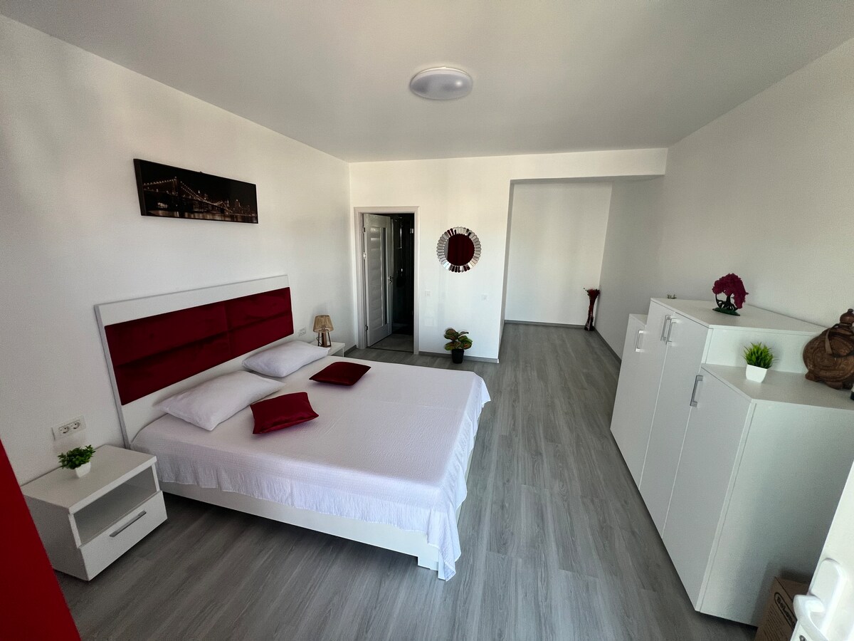 Moderni 38 neliömetrin yksiö Navodarissa, lähellä rantaa, ihanteellinen pariskunnille tai pienille perheille. Valoisa olohuone, jossa on varustettu keittiö ja erillinen makuuhuone mukavuutta ja yksityisyyttä varten. Oma nurmikolla varustettu patio, täydellinen aamukahville tai rentouttaville iltoille. Yksityinen pysäköinti sisältyy hintaan. Alue on täydessä kehityksessä, ja uusi Kaufland on lähellä, joten voit tehdä ostoksia nopeasti ja nauttia täydestä lomamukavuudesta.