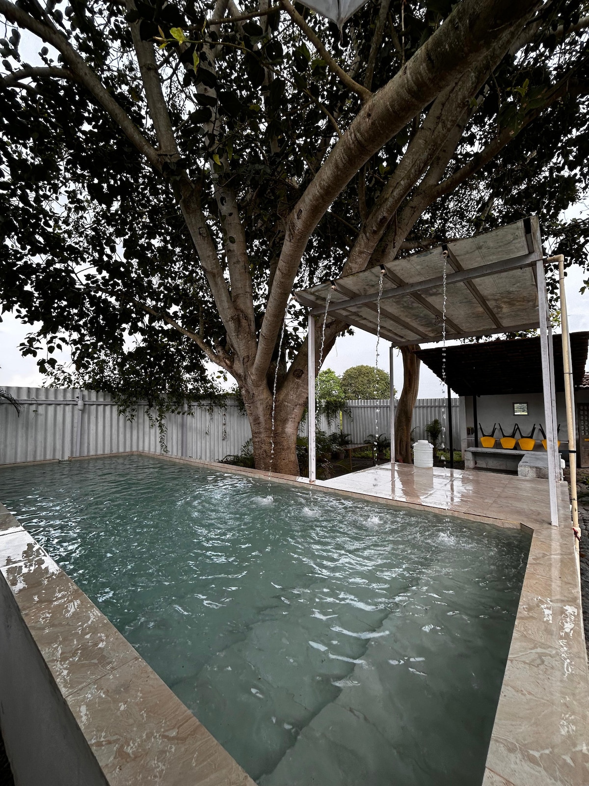 Ylellinen yksityinen uima-allas, 2 makuuhuoneen huvila, jossa on keittiö. Kussakin huoneessa voi majoittua enintään 2 aikuista ja 1 lapsi. Se on lähellä päätietä, mutta sitä ympäröivät viljelysmaat. Yhdessä makuuhuoneessa on avoin kylpyhuone, jossa on ympäri vuorokauden kuuma vesi. Vieraamme pitävät siitä eniten. Hyvät ravintolat ja matkailupaikat, kuten Sula-viinitarhat (retki, maistelu ja ravintola), Wonder la ja kuuluisat temppelit, kuten Ambegalun Krishnan temppeli. Kotiruokaa ja nuotiopaikka saatavilla pyynnöstä. Ulkoalue sulkapalloa ja krikettiä varten.