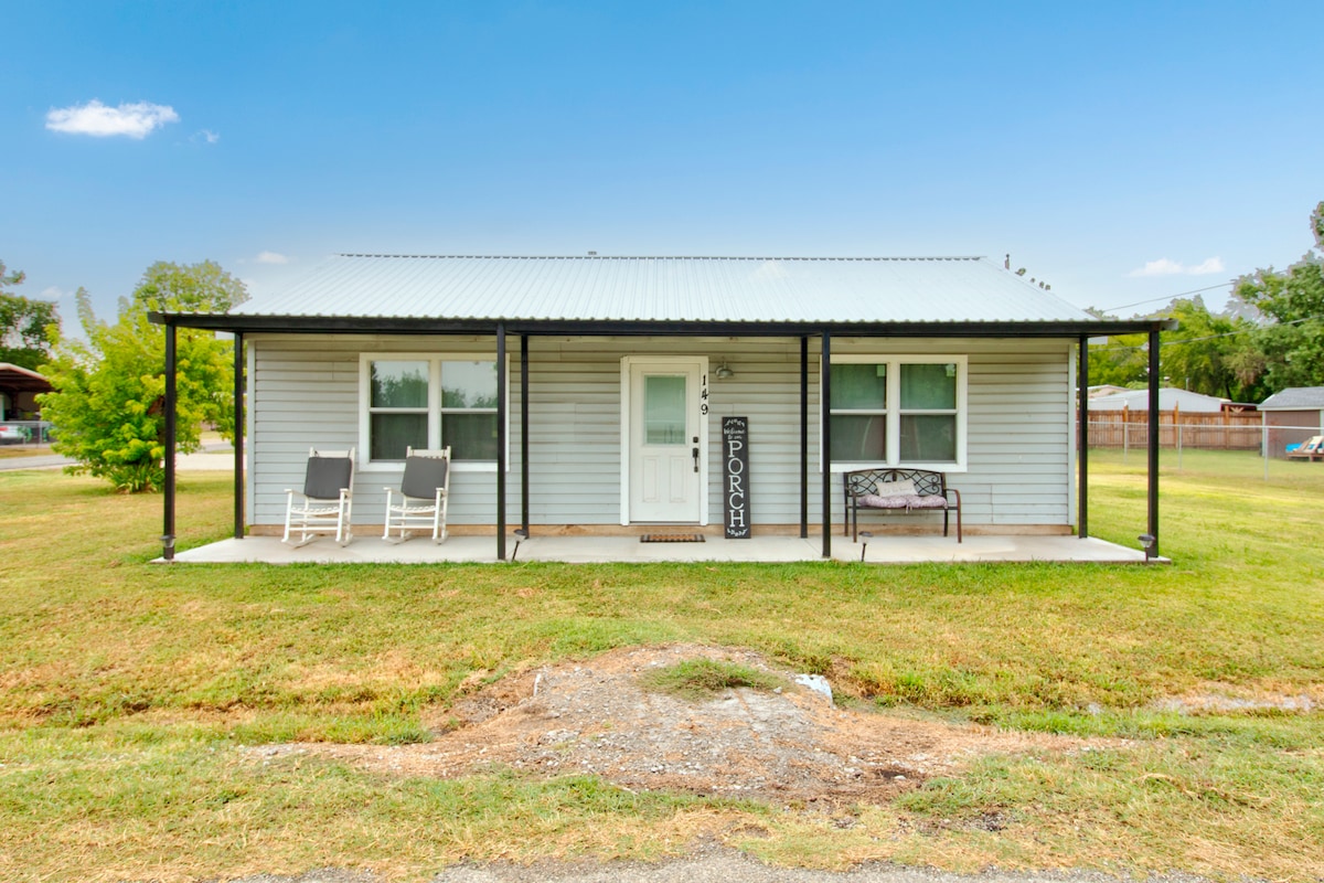 Rentoudu tässä viihtyisässä 2 makuuhuoneen ja 1 kylpyhuoneen mökissä Texoman järven lähellä. Ihanteellinen pariskunnille, perheille tai ystäville. Majoittaa neljä ja tarjoaa rauhallisen retriitin, jossa on patio, jolla voit nauttia kupin tuoretta aamukahvia ja villieläinten näkymiä. Kun olet viettänyt päivän järvellä, voit nauttia virkistävän ulkosuihkun, sytyttää grillin ja rentoutua paikallisen oluen kanssa Texasin taivaan alla.