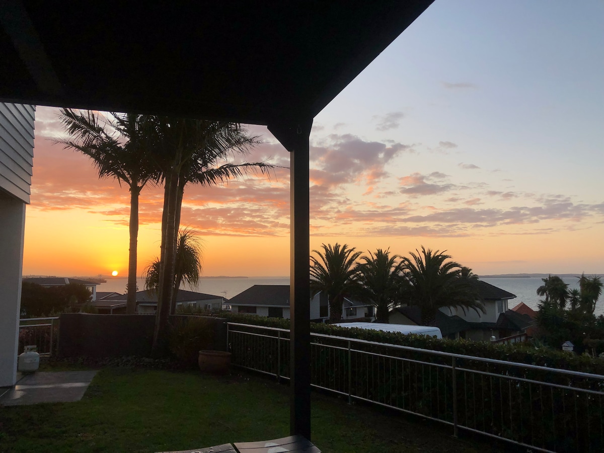 Keskeinen Takapuna, kävelymatka rannalle, kahviloita, ravintoloita