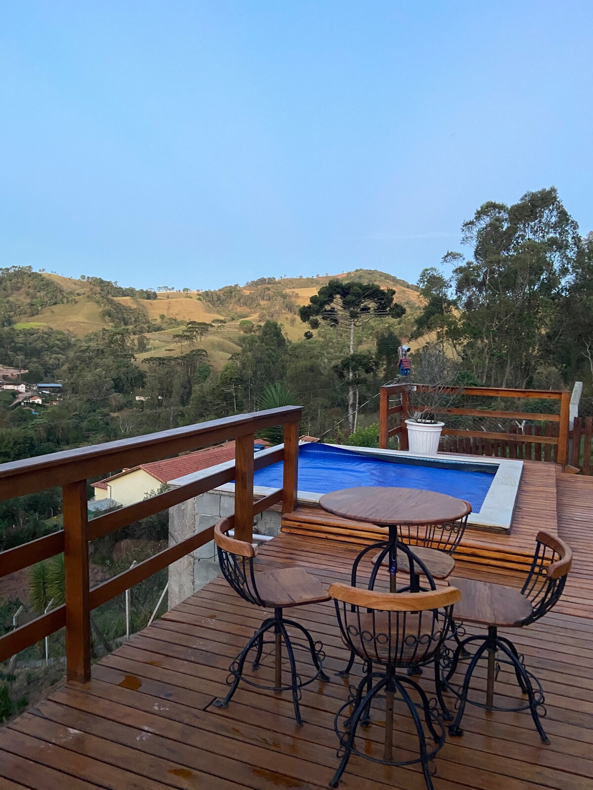 Vuoristomaja, jossa on poreallas ja näkymä Pedra do Baú -vuorelle